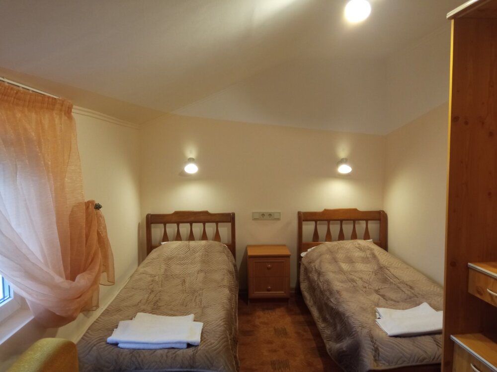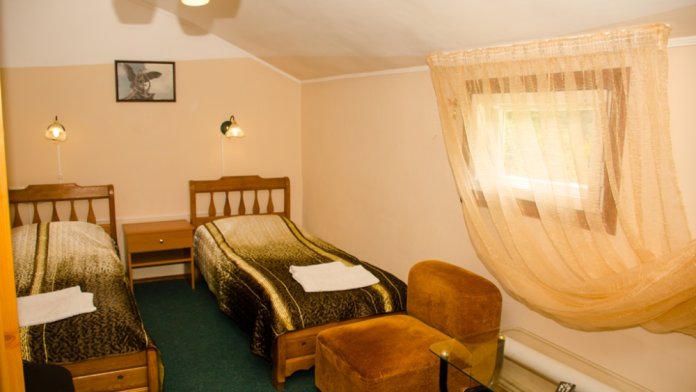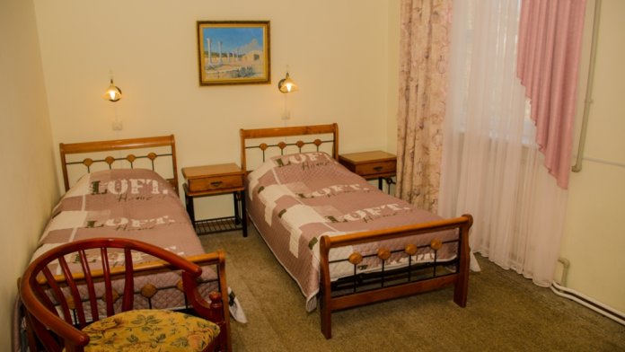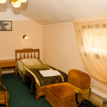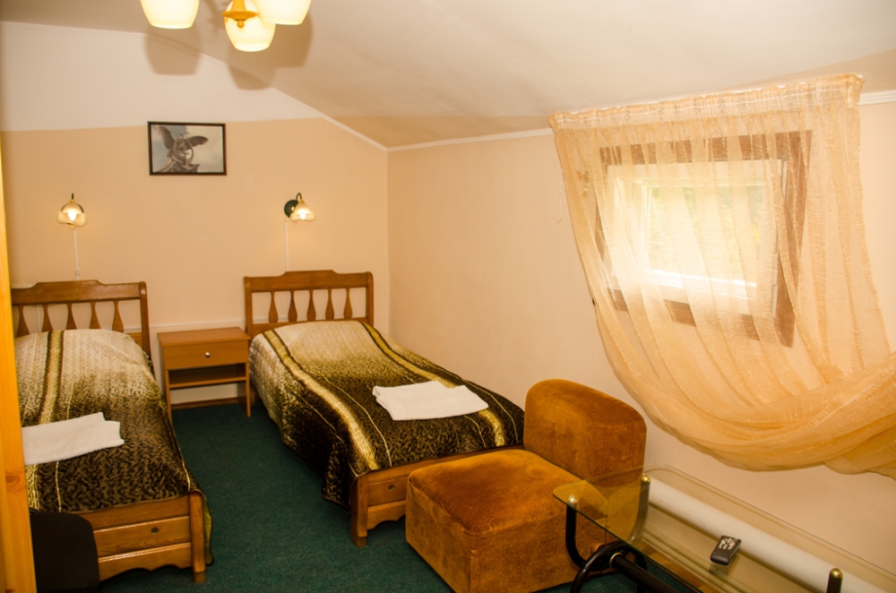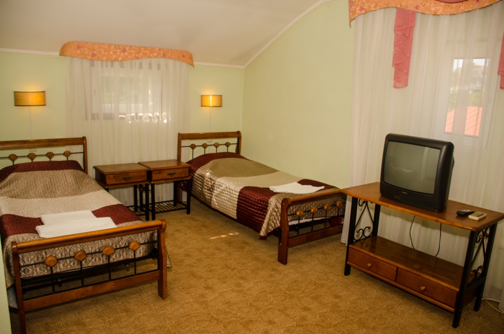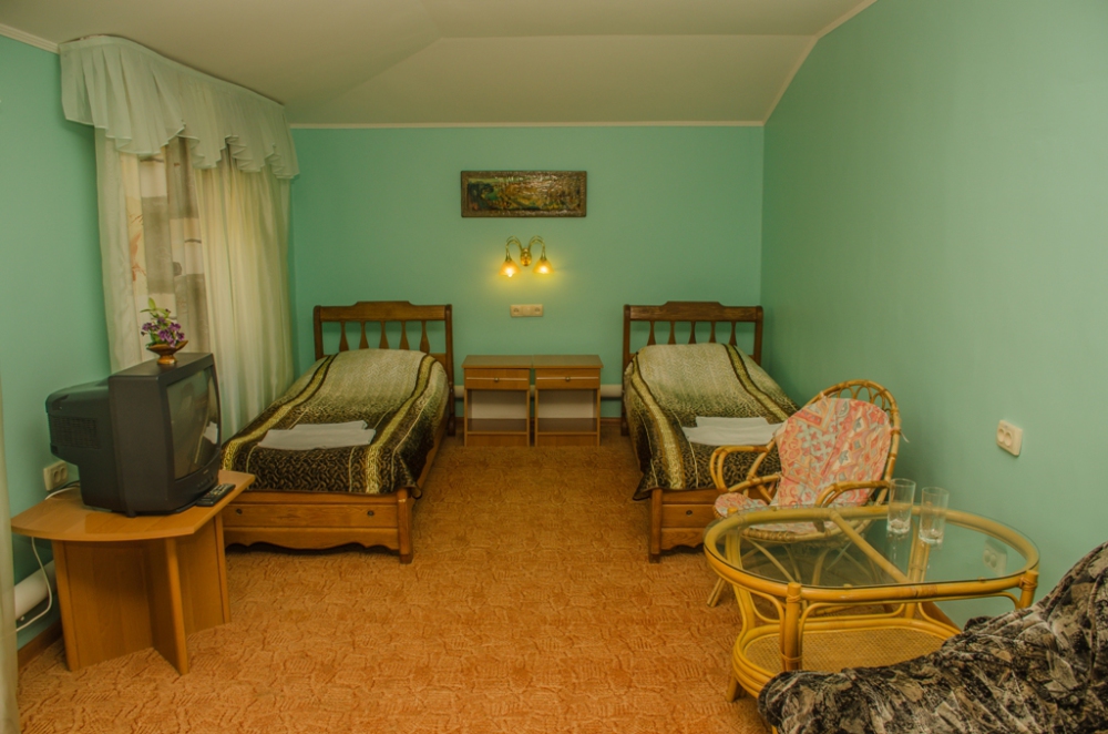 Номер удобен для людей, приезжающих в командировку, а так же, как вариант экономного отдыха. В номере: две односпальных кровати; вентилятор; телевизор; душевая кабина, санузел, набор полотенец, набор туалетных принадлежностей, горячая и холодная вода круглосуточно.