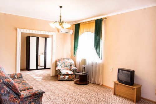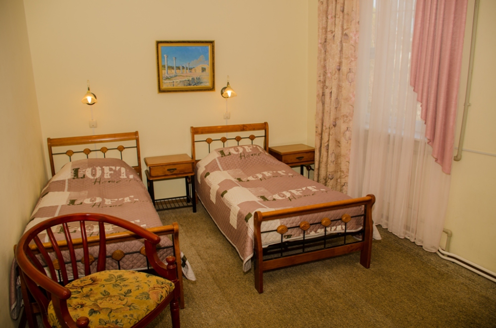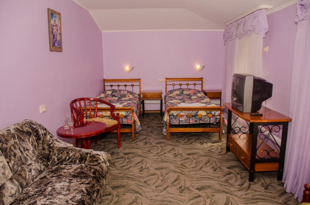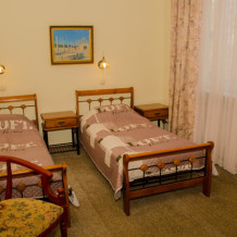 Номер для людей, ценящих сочетание комфорта и простора. В номере: две односпальные кровати, холодильник, кондиционер, телевизор душевая кабина, санузел, набор полотенец, набор туалетных принадлежностей, горячая и холодная вода круглосуточно.