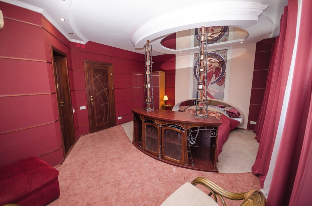Уютный двухкомнатный номер с прихожей и двумя спальнями. В номере: гостиная располагает мягким диваном, ротанговой мебелью, кондиционером, холодильником, телевизором. В первой спальне: двуспальная кровать, а во второй – односпальная, рабочий стол и шкаф.