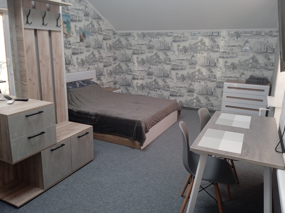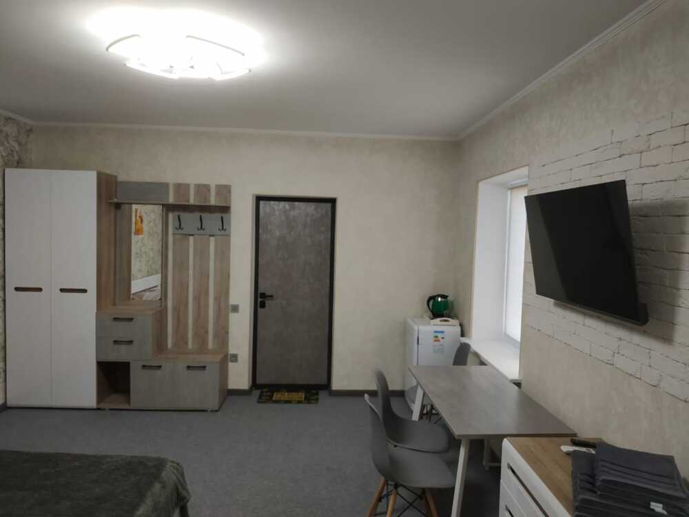 Номер не типовой, расположен на 3 этаже. Двухместный номер стандарт с обеденным уголком, Холодильником, санузлом. Кухня общая, уборка номера через четыре дня, смена постельного белья раз в неделю.