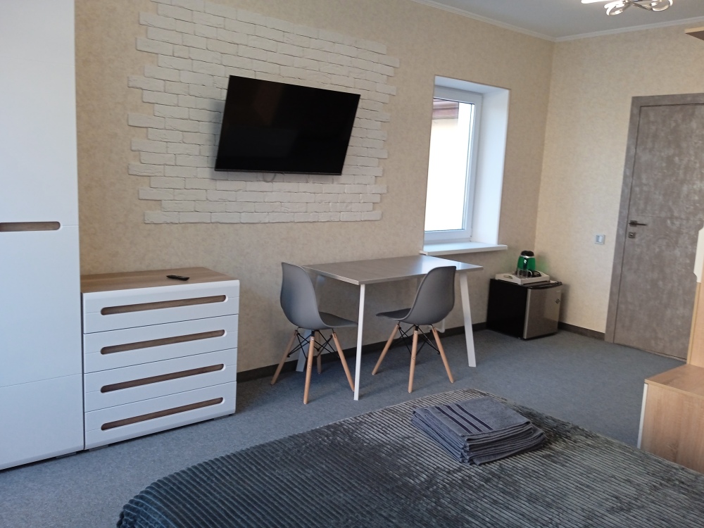 Двухместный номер стандарт расположен на 2 этаже, не типовой. В номере есть обеденный уголок, холодильник, санузел. Кухня общая.