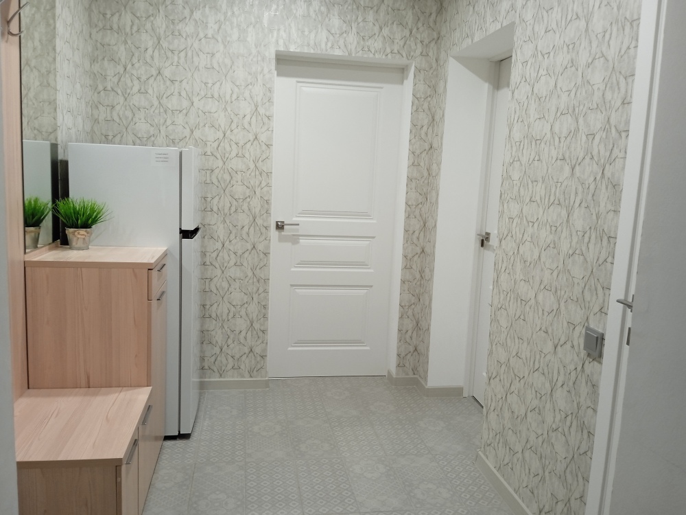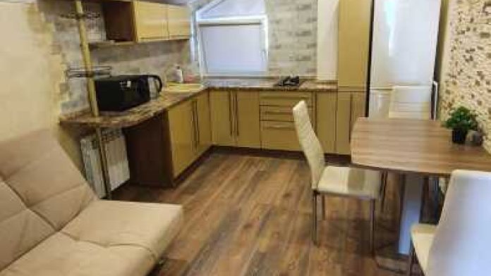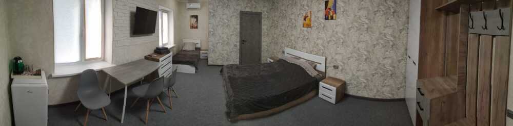 Двухкомнатный семейный люкс с прихожей, двумя комнатами, обеденным уголком, холодильником, большим балконом и санузлом. Кухня общая.