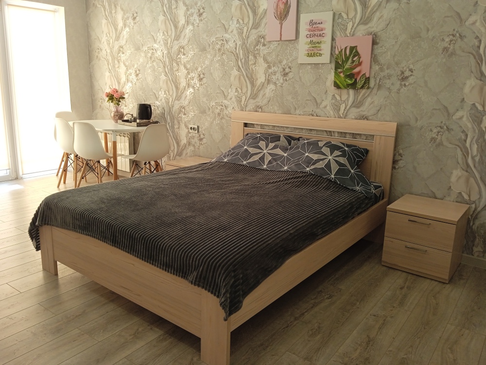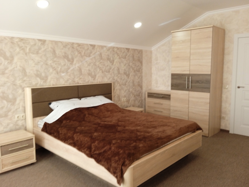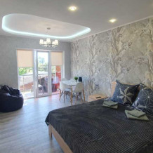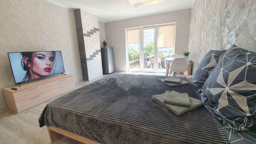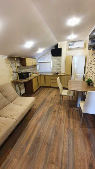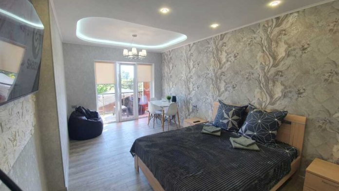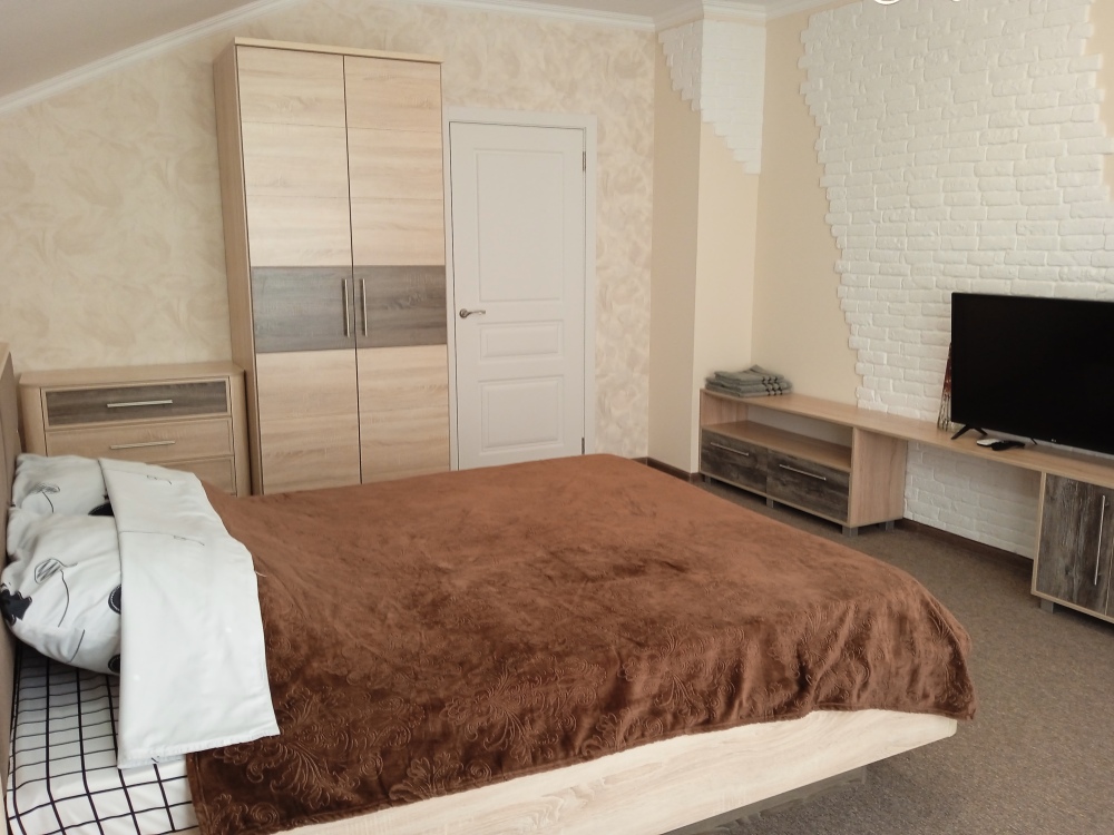 Апартаменты люкс с двумя спальнями, гостиной, собственной кухней и большим балконом. Санузел с ванной. Уборка через 4 дня, смена постельного белья раз в неделю.