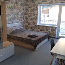 Не типовой, расположен на 1 этаже. Апартаменты люкс с большим балконом, обеденным уголком, холодильником, санузлом. Кухня общая.
