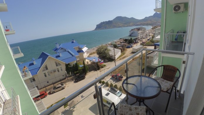 Квартира расположена на 5 этаже 7 этажного, нового дома в 80 метрах от пляжа Черного моря. Из окна и с балкона открывается вид на Черное море, гору Кара-Даг и пос. Коктебель.
