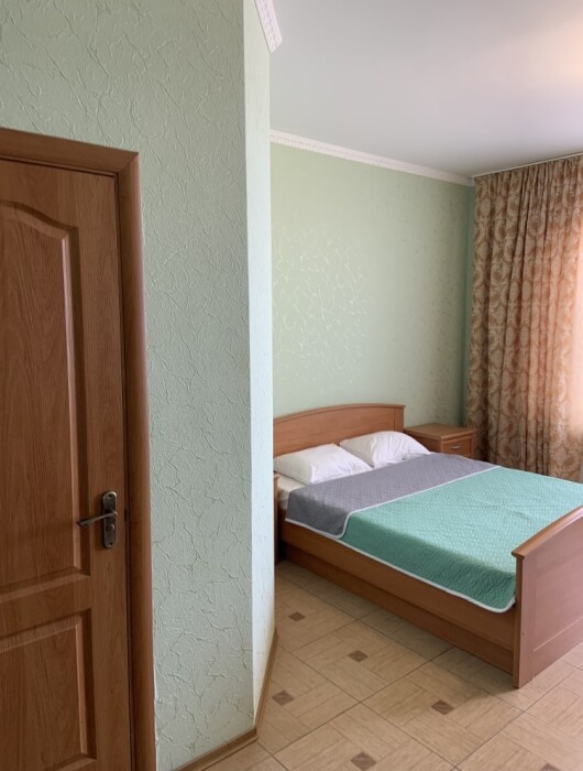 В апартаменте имеется кухня, санузел, открытая лоджия 10 кв. м; 2-спальная кровать + 2-местный диван, телевизор, кондиционер, фен, утюг, постельное белье, полотенца.