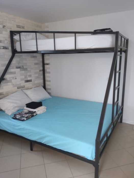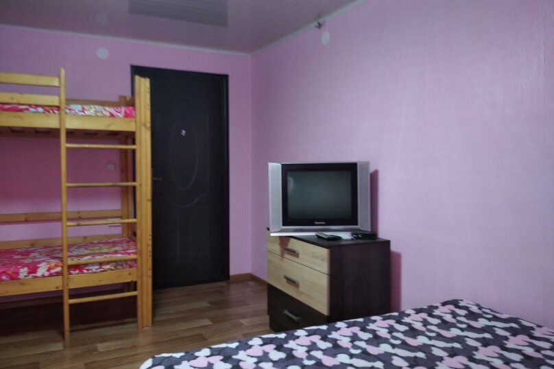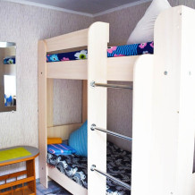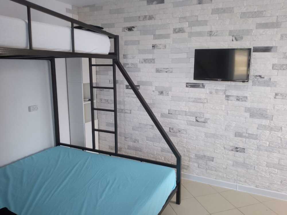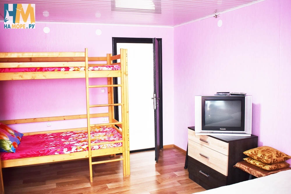 В комнате двухспальная кровать, 1,5 спальная кровать, двухъярусная кровать, шкаф, журнальный столик, ТВ, сплит система, комод.