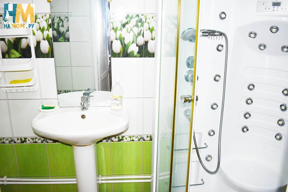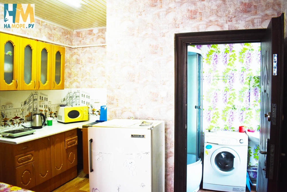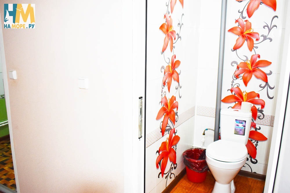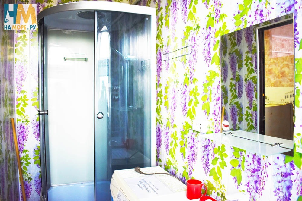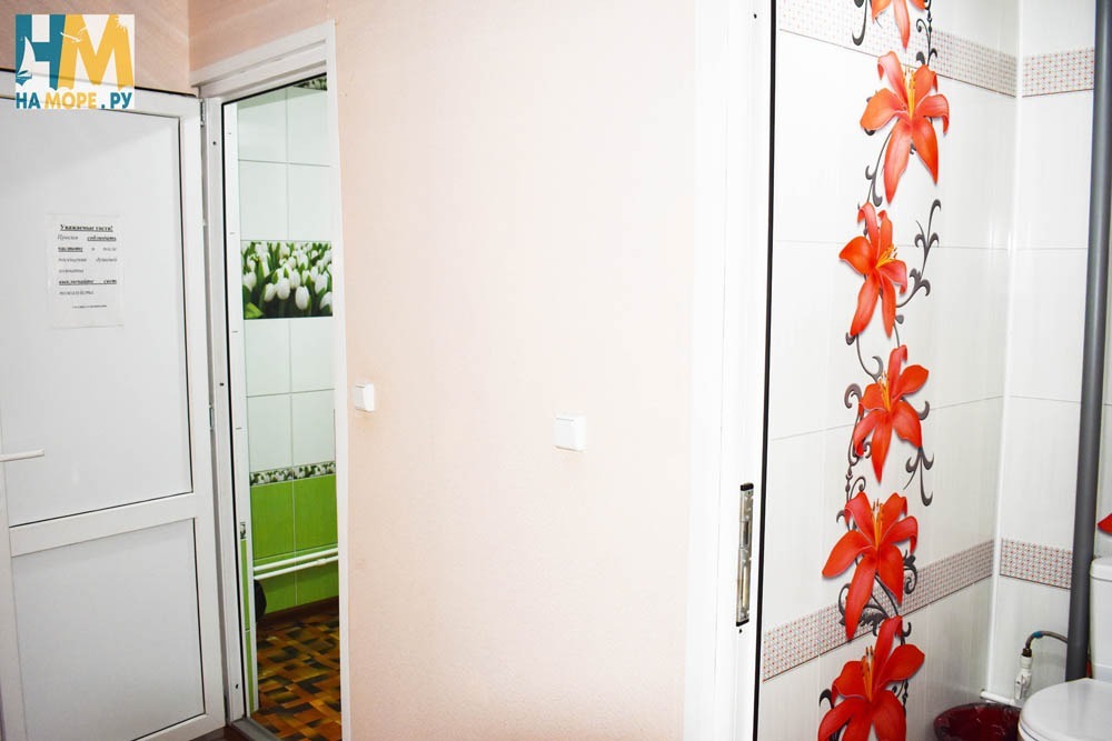 Душ и туалет общие на три комнаты, на этаже. Также есть на улице раздельный санузел. Море через дорогу.