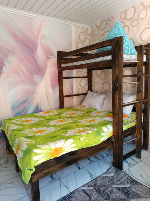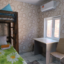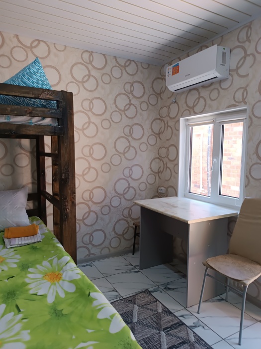 Комнаты расположены на втором этаже. Удобства общие как на этаже, так и во дворе. Кухня оборудована всём необходимым. Смена постельного белья раз в 10 дней. Есть небольшая зона отдыха, мангал, видеонаблюдение, вода круглосуточно. Трансфер по запросу за дополнительную плату. Вечеринки запрещены. Курение в строго определённом месте.