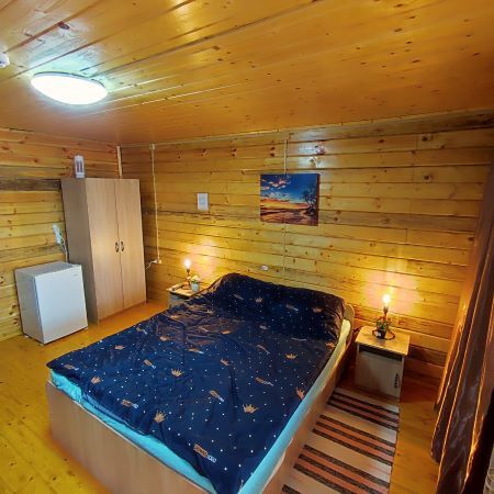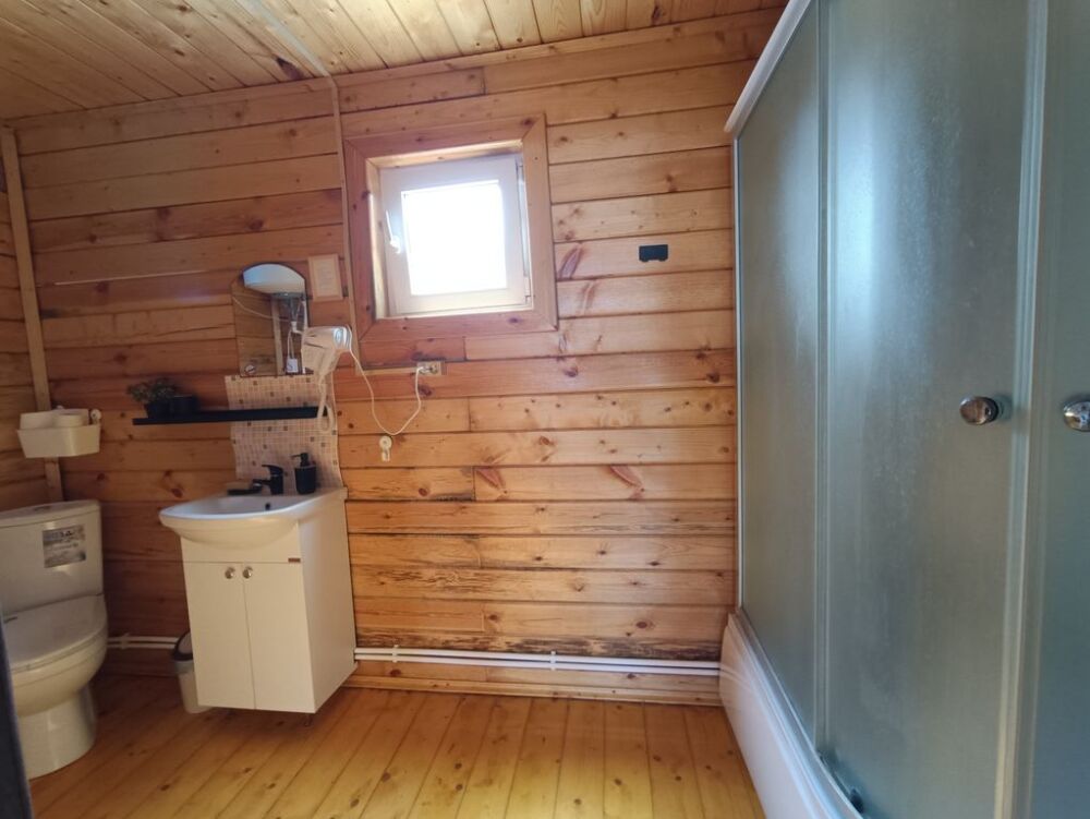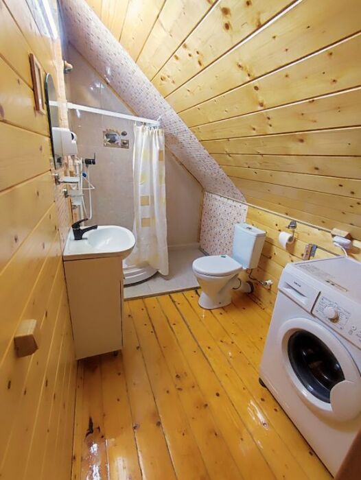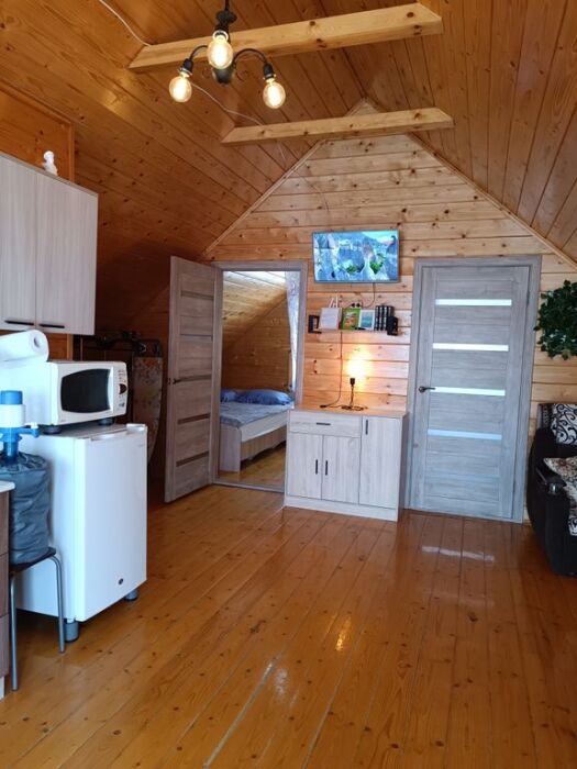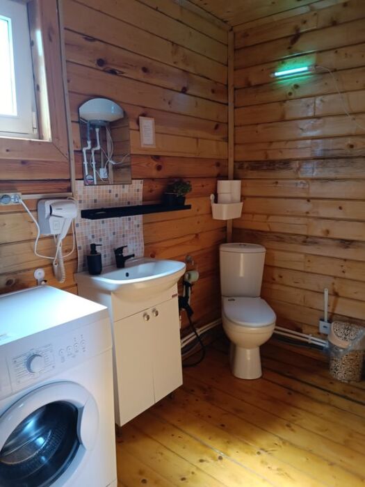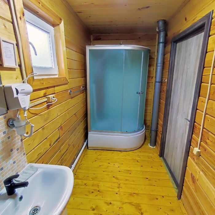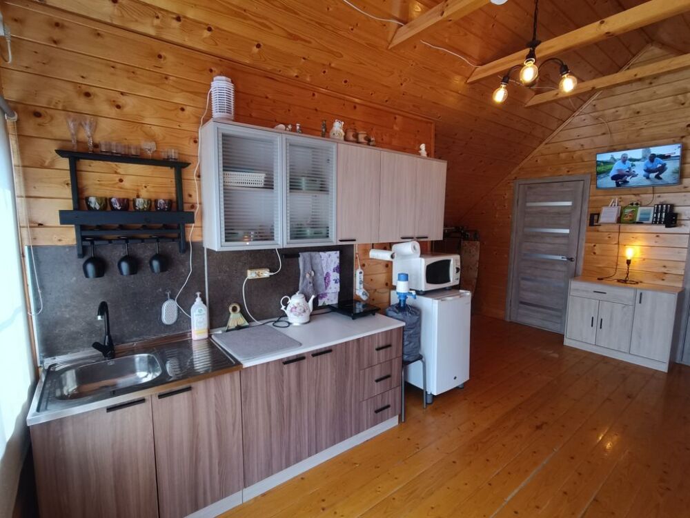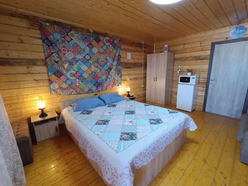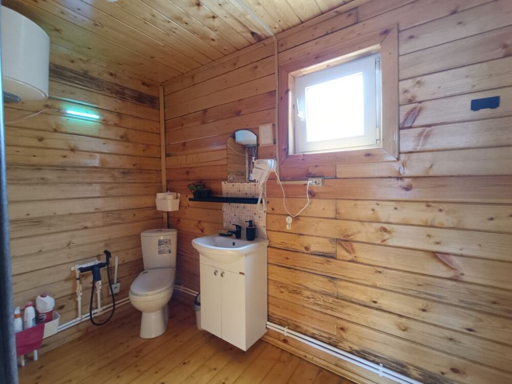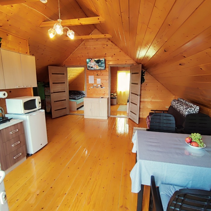 На первом этаже вас ждут два одинаковых помещения. В каждом из них есть свой санузел с душевой кабинкой, кухня, веранда с освещением и жилая комната. В каждом помещении установлены двуспальные кровати и раздвижной полутороспальный диван. На веранде первого этажа можно наслаждаться звуками моря, прибоя и пляжа.