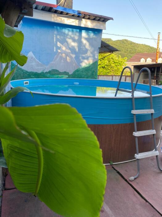 На территории дома есть парковка для автомобилей, зона отдыха с мангалом и беседка, бассейн, общая кухня для самостоятельного приготовления пищи.