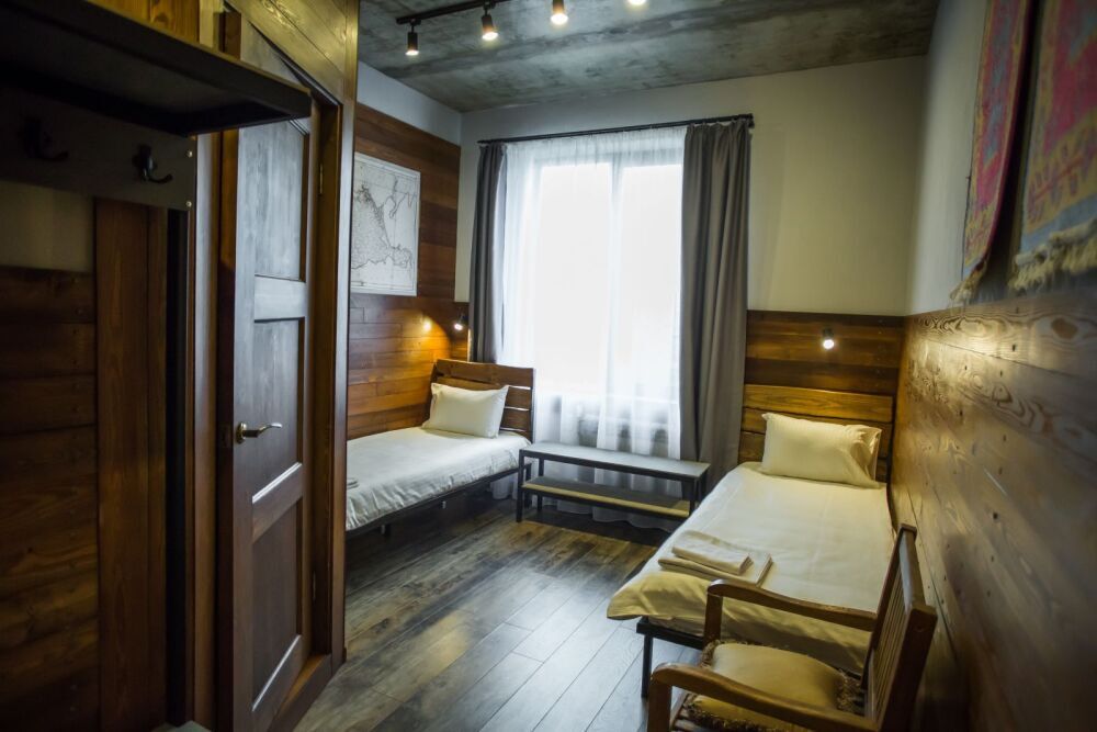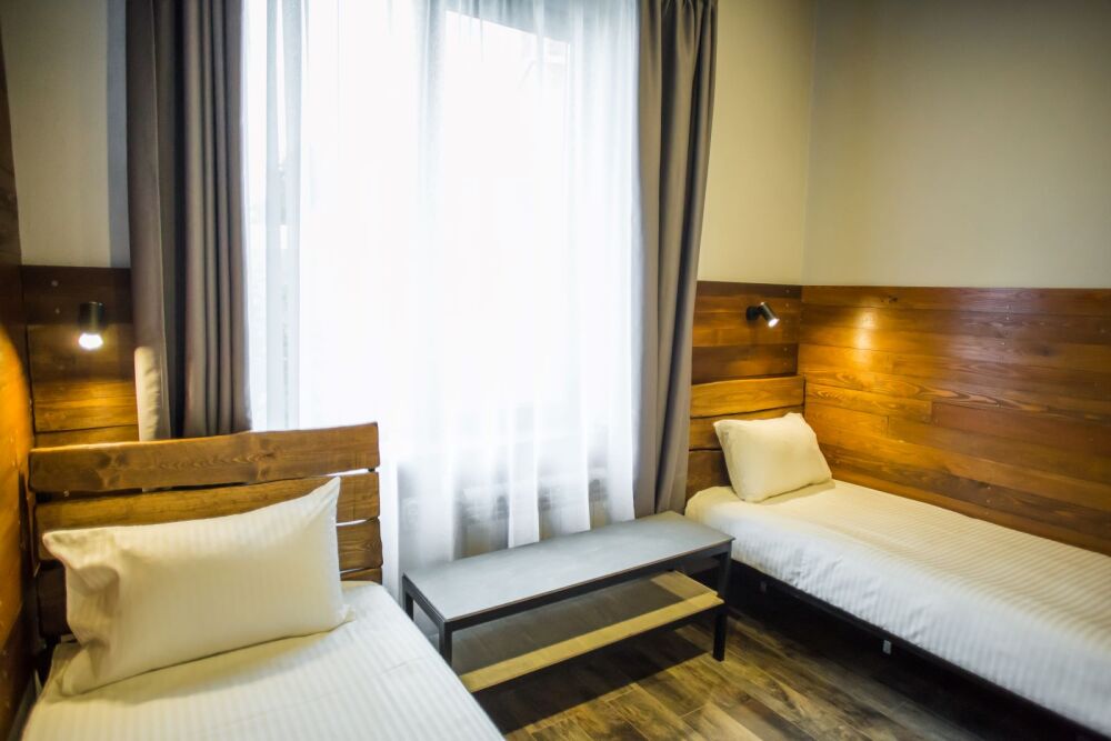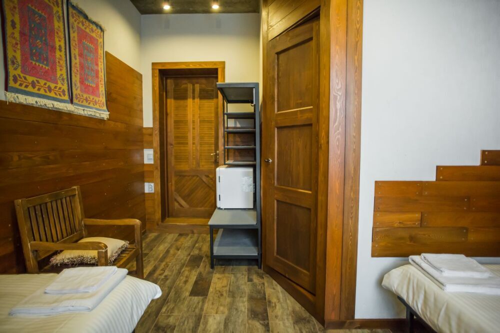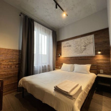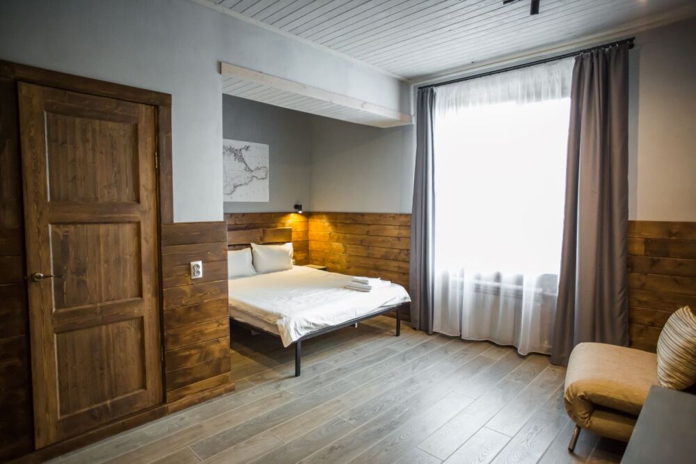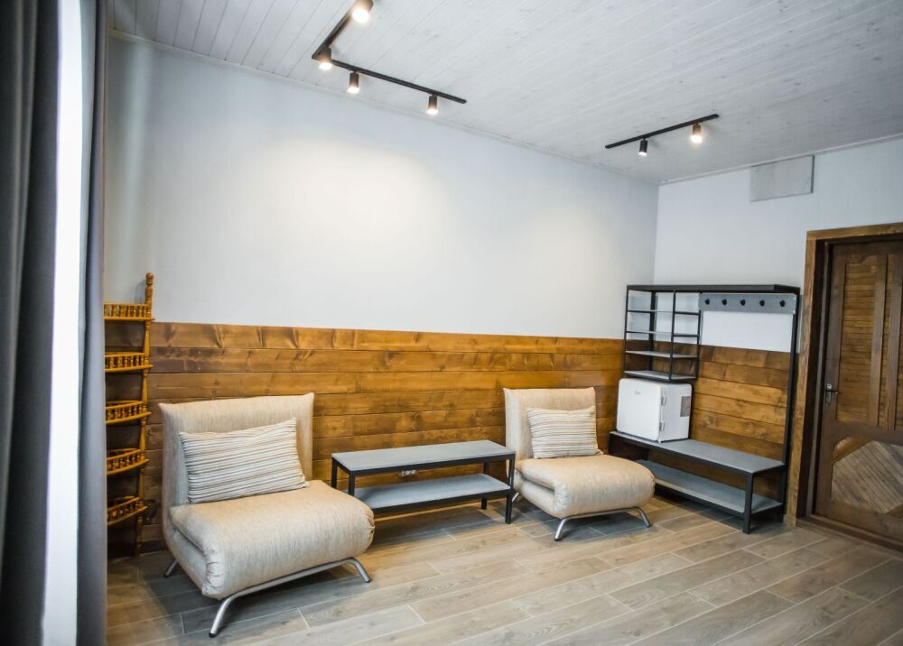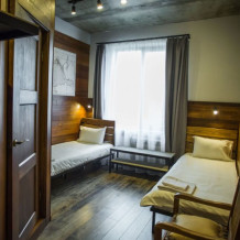 Семейный номер с двуспальной кроватью и двумя креслами-кроватями.
