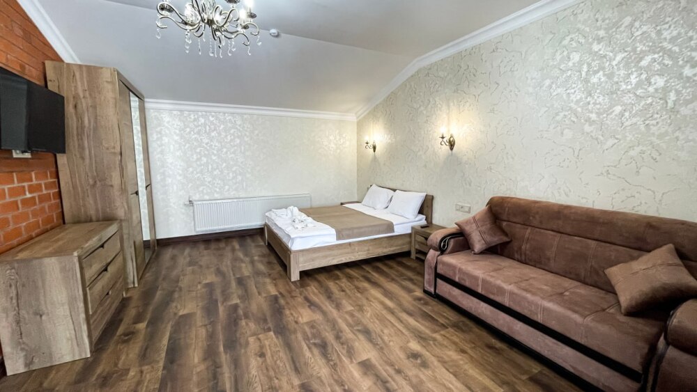 - двуспальная кровать и диван-кровать с постельным бельём;