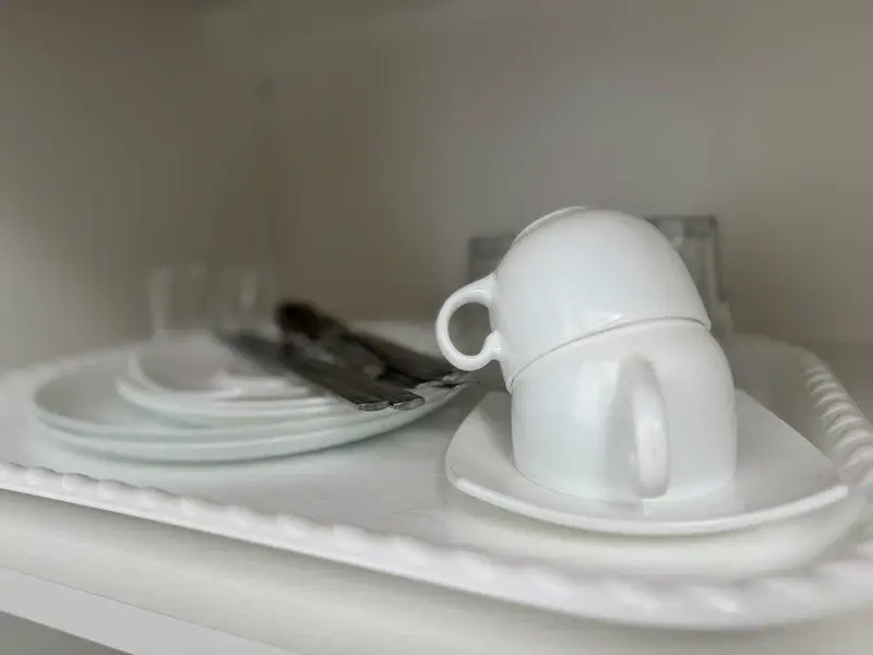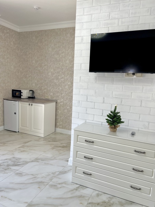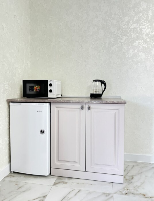 - оборудованная кухня с холодильником, микроволновой печью, чайником, посудой и столовыми приборами;