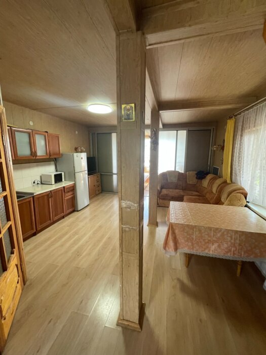 В доме оборудованная кухня-гостиная и три спальня.