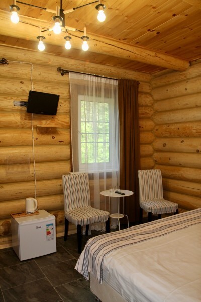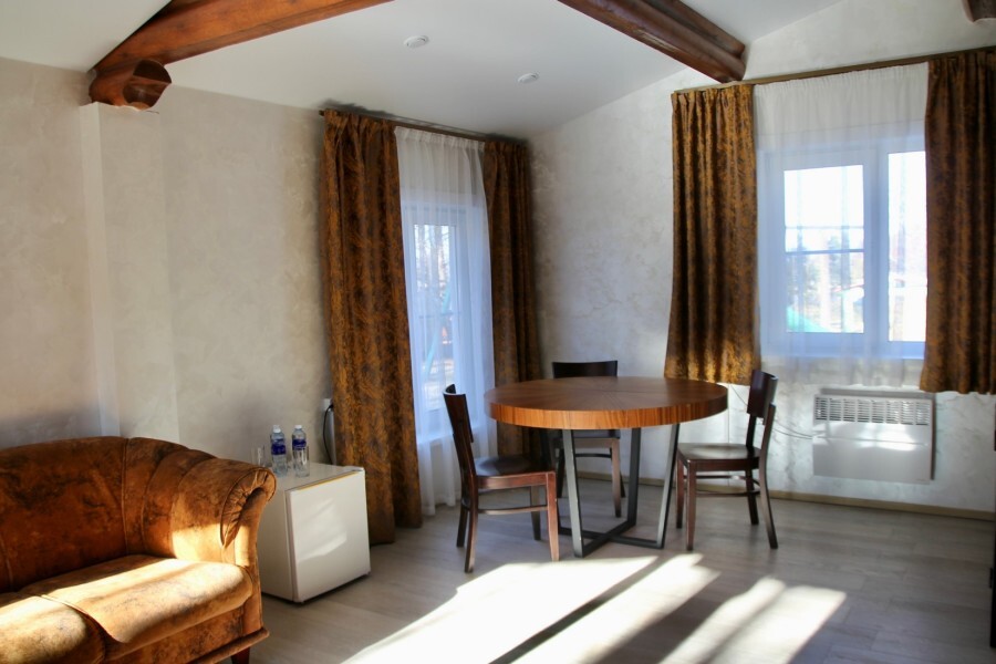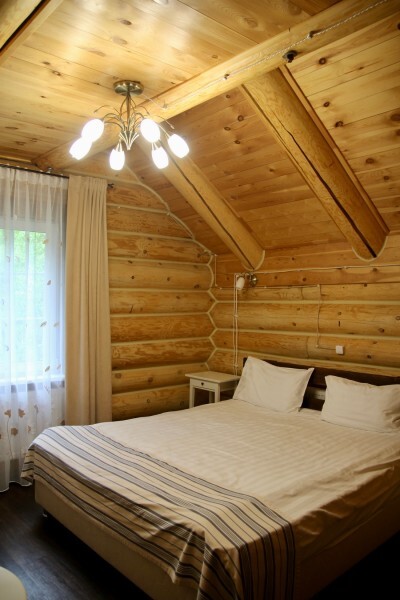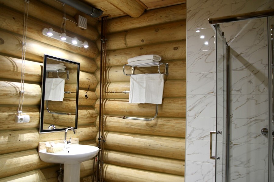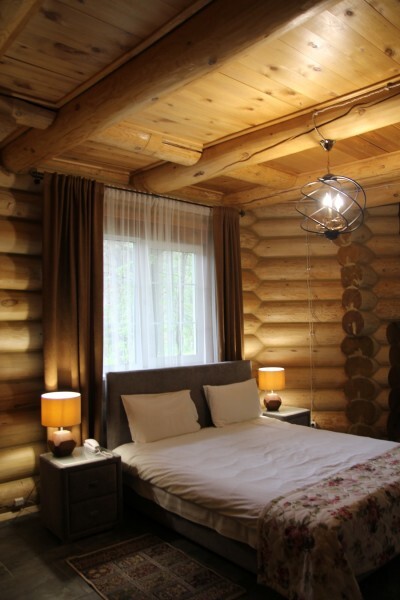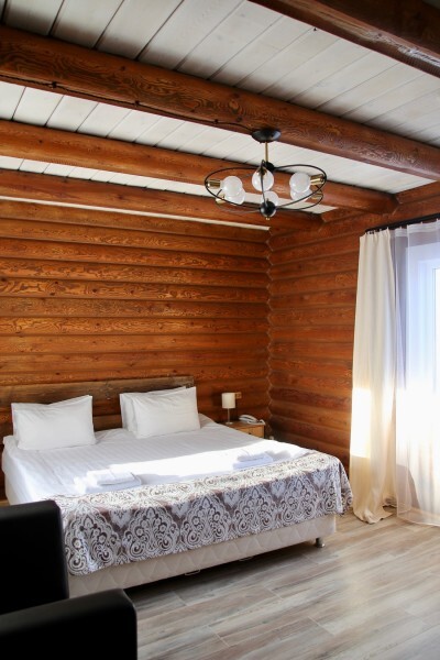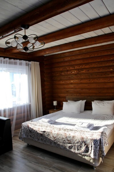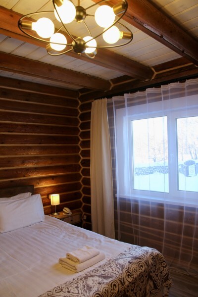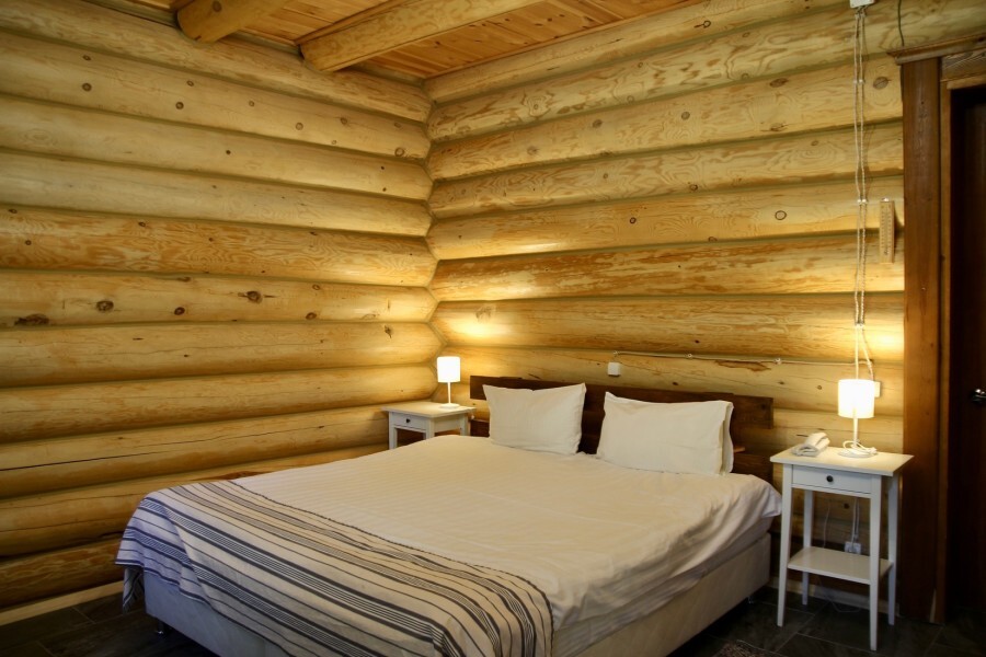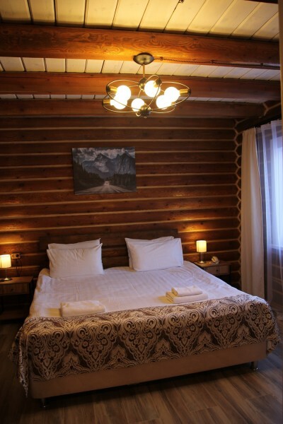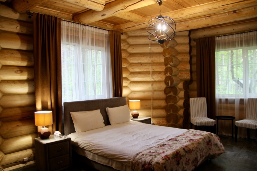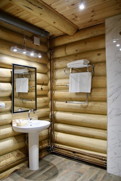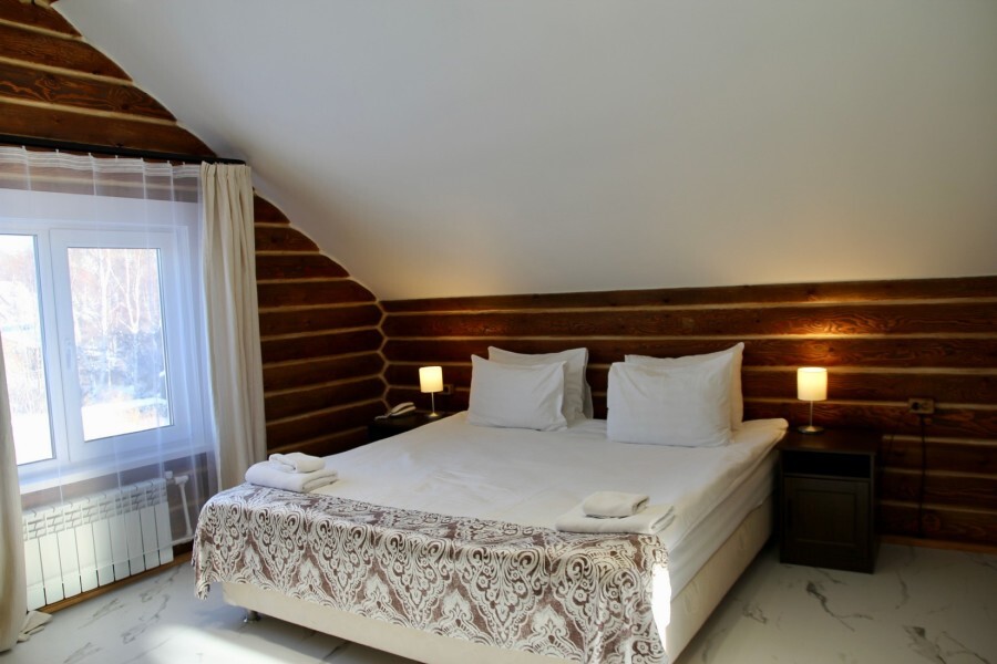 Весь номерной фонд выполнен из сибирской сосны в традициях русского деревянного дома.