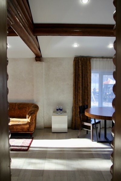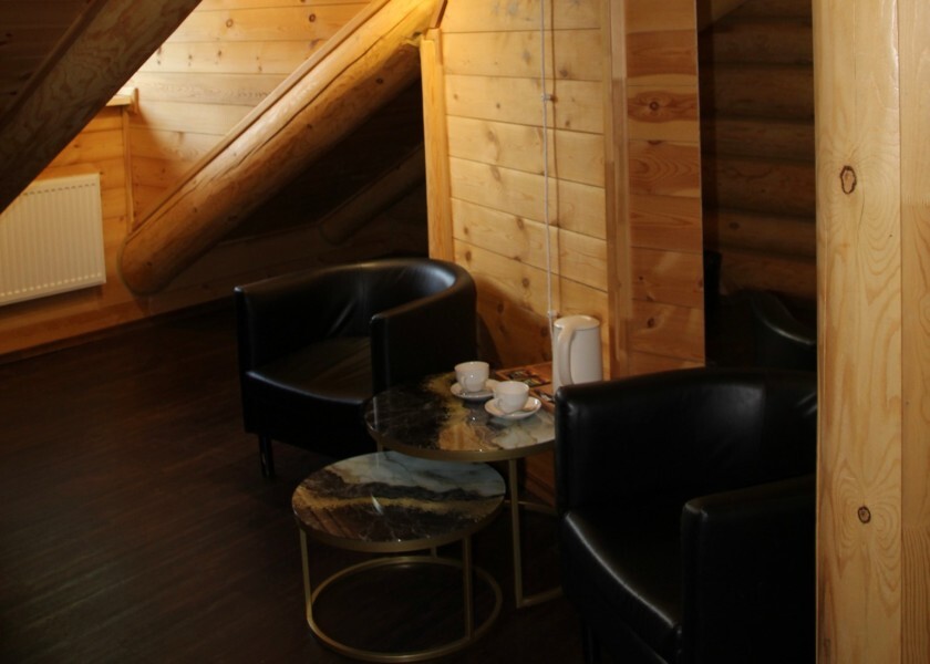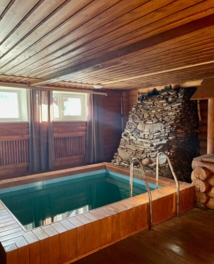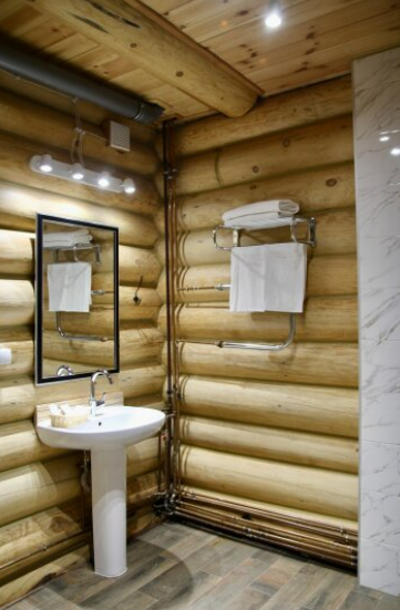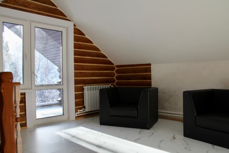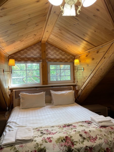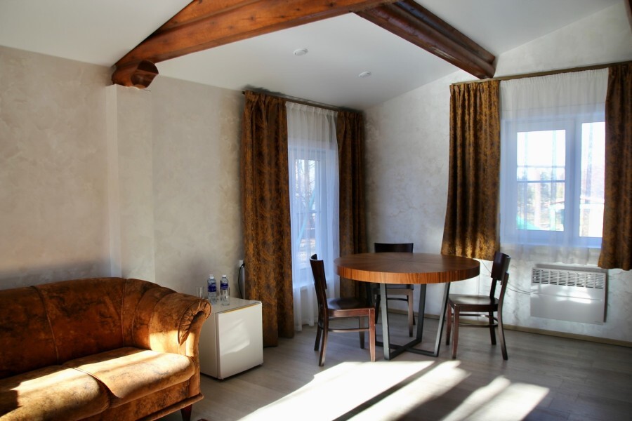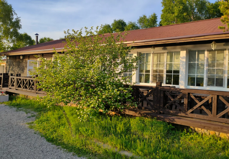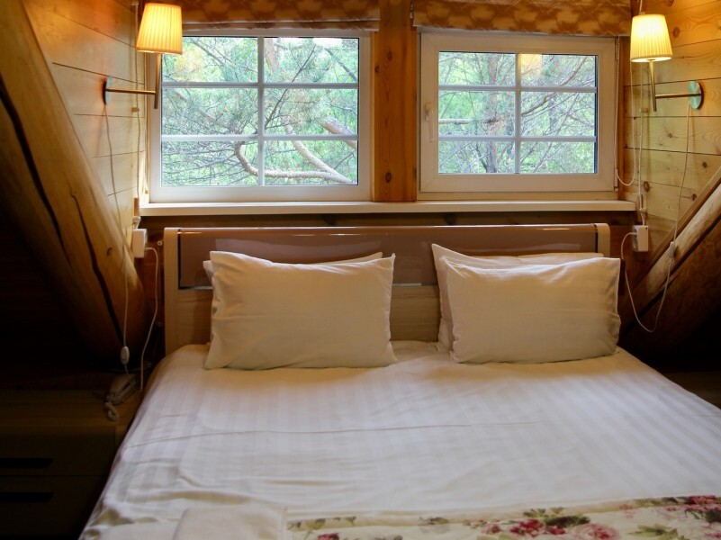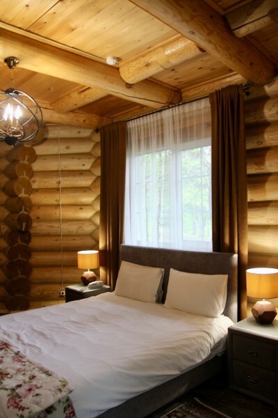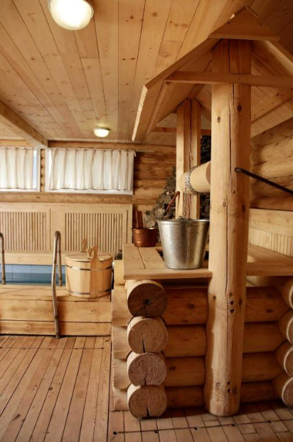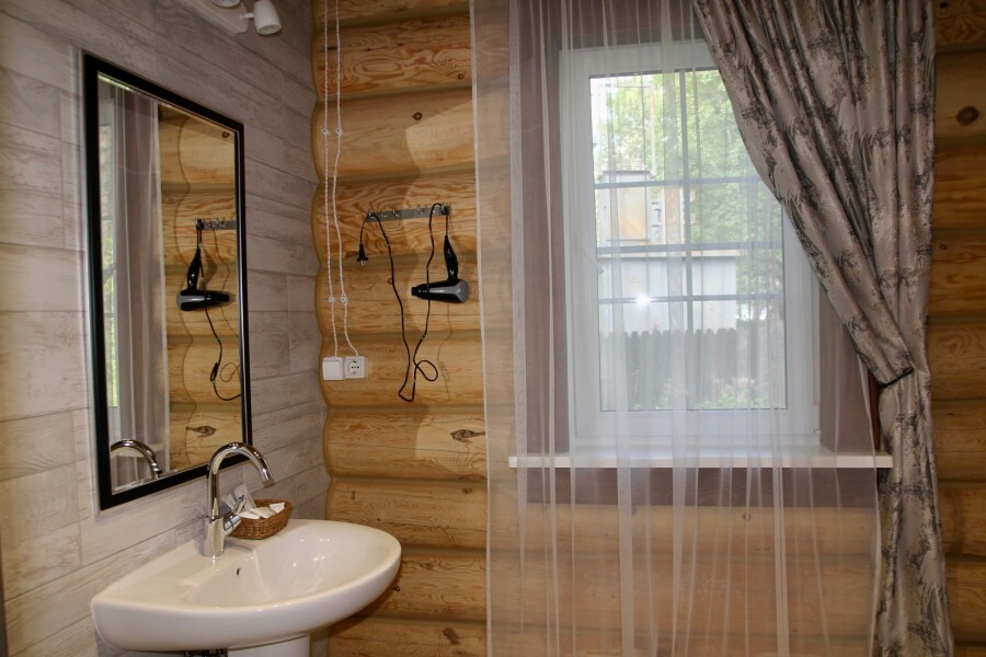 Весь номерной фонд выполнен из сибирской сосны в традициях русского деревянного дома.