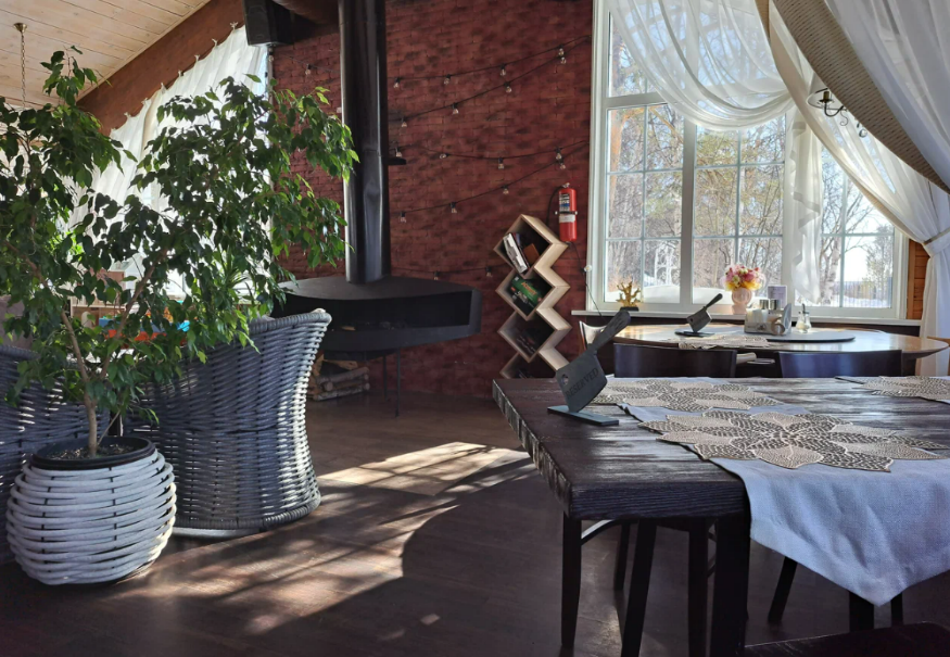 Блюда русской и европейской кухни готовятся из местных «байкальских» овощей, мяса и рыбы. Для гостей парк-отеля организовываются комплексные обеды. Также на территории ресторана доступно проведение банкетов, корпоративов, свадеб и других мероприятий. У нас есть все условия для проведения корпоративных развлечений любого типа.