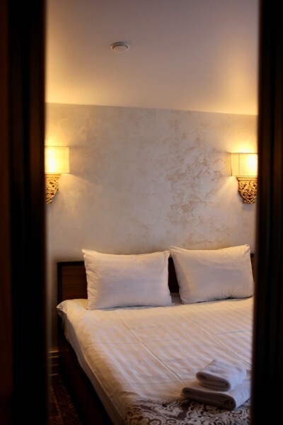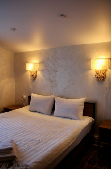 Комплектация номера: двуспальная кровать или две односпальные кровати, прикроватные тумбочки со светильниками, кофейный стол, два стула, санузел с душевой кабиной.