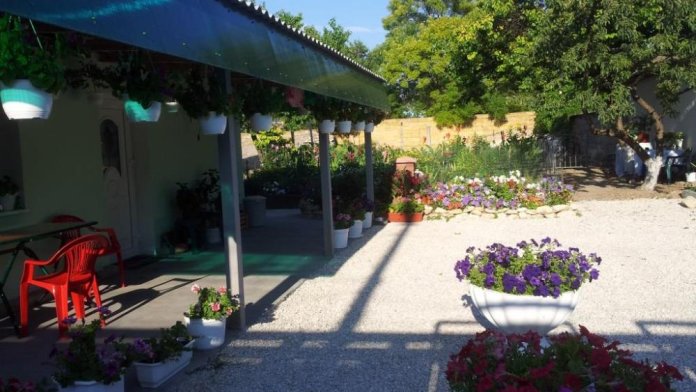 К дому пристроен навес, где можно приятно провести время на свежем воздухе, приготовить шашлык на мангале.