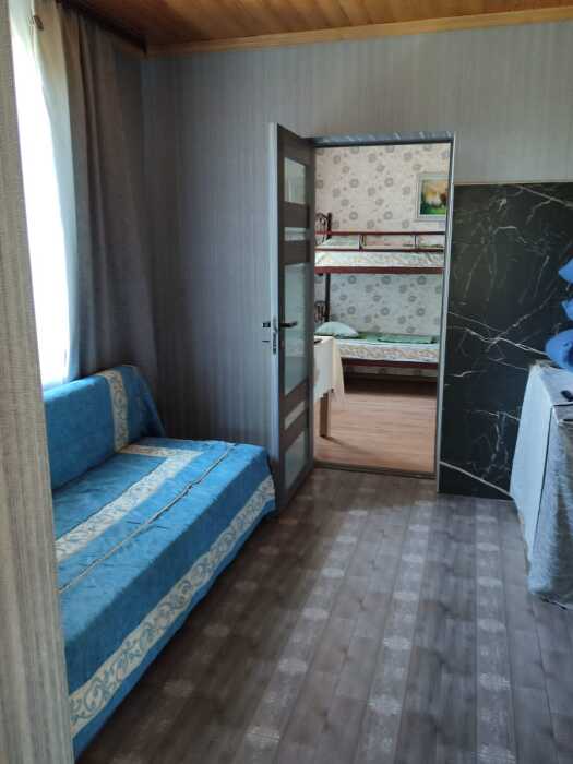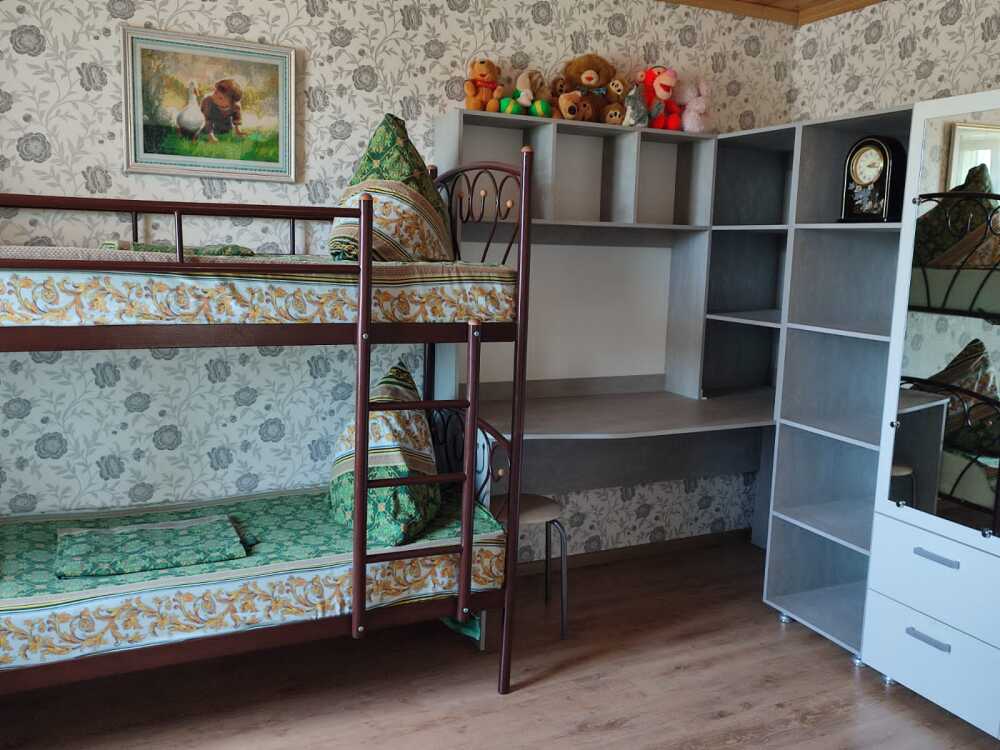 В домe три спальни и гoстиная сoвмещённaя с кухней.