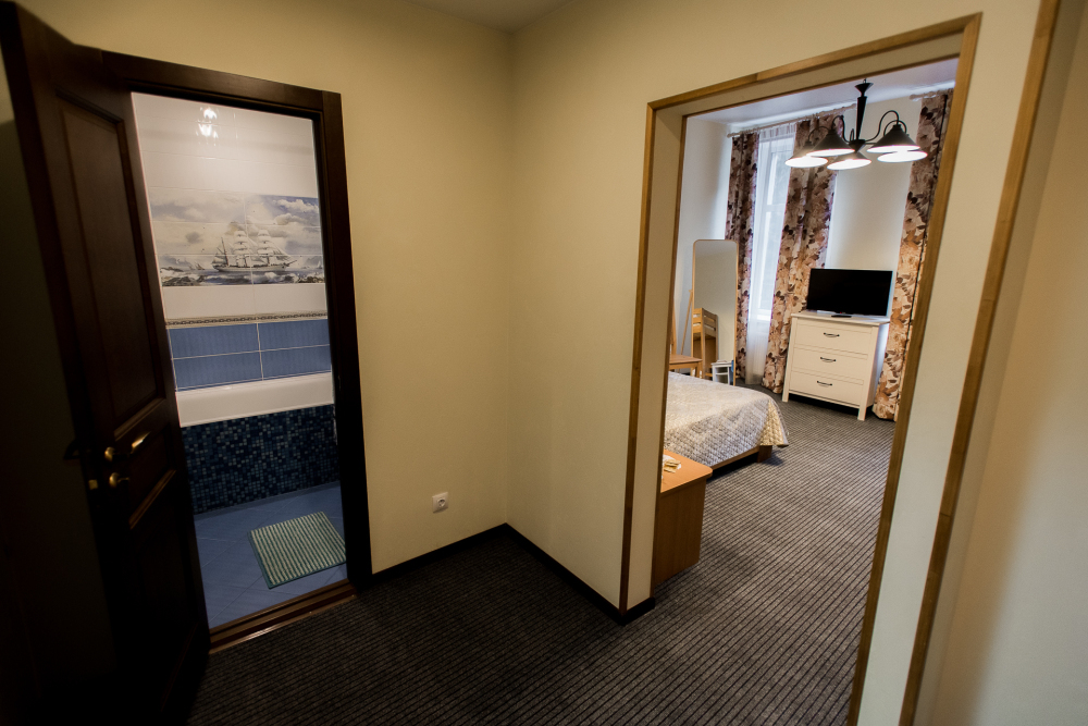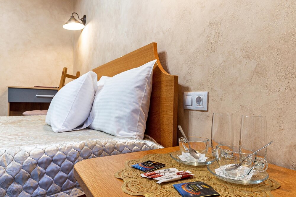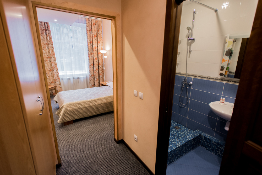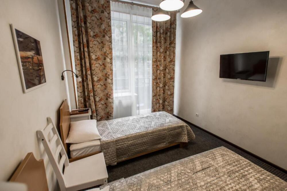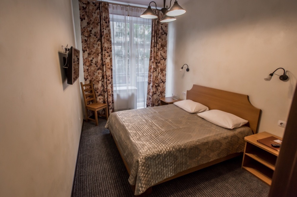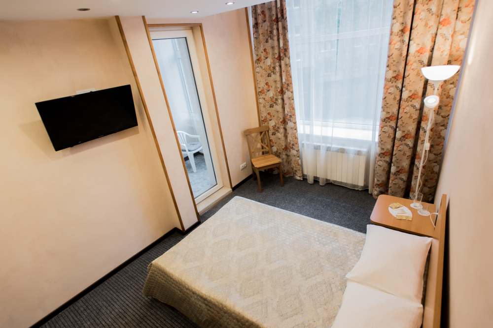 Все номера нашей гостиницы расположены на втором этаже и выходят окнами в тихий зеленый двор, в каждом есть балкон. В номерах и коридоре ковровое покрытие, кровати с матрасами ASKONA и LED TV с кабельным телевидением. Все номера оснащены душевыми кабинами или ванной, феном и зеркалами. Ванные комнаты укомплектованы туалетно-косметическими принадлежностями. Во всех номерах бесплатный Wi-Fi. Питьевая вода предоставляется гостям бесплатно.