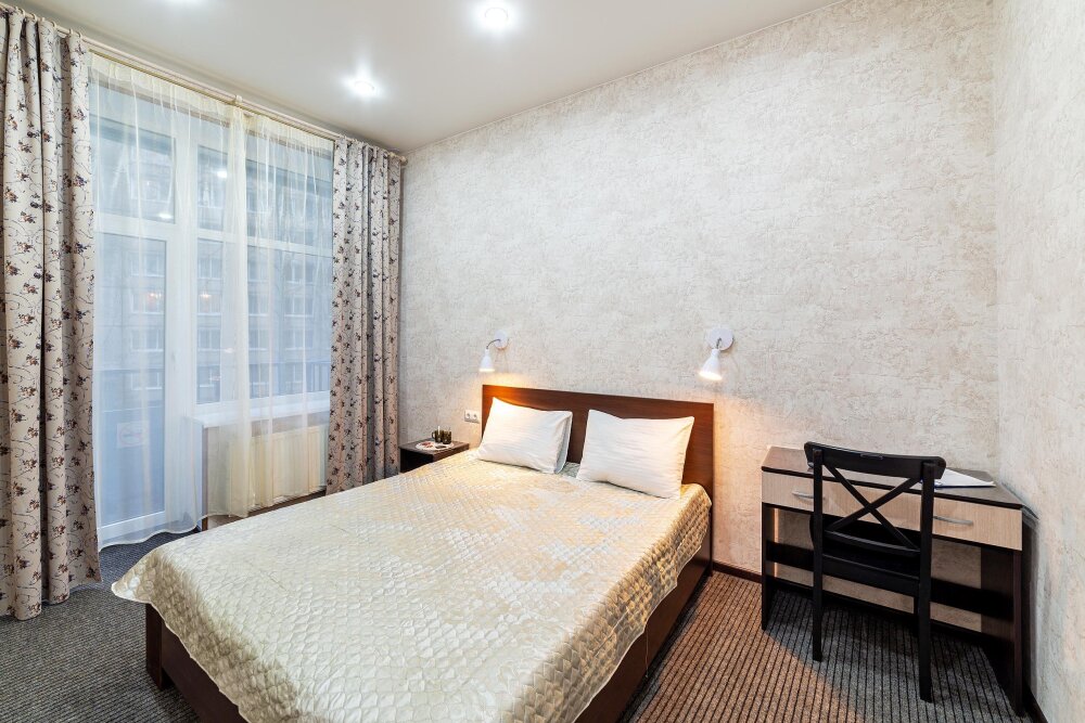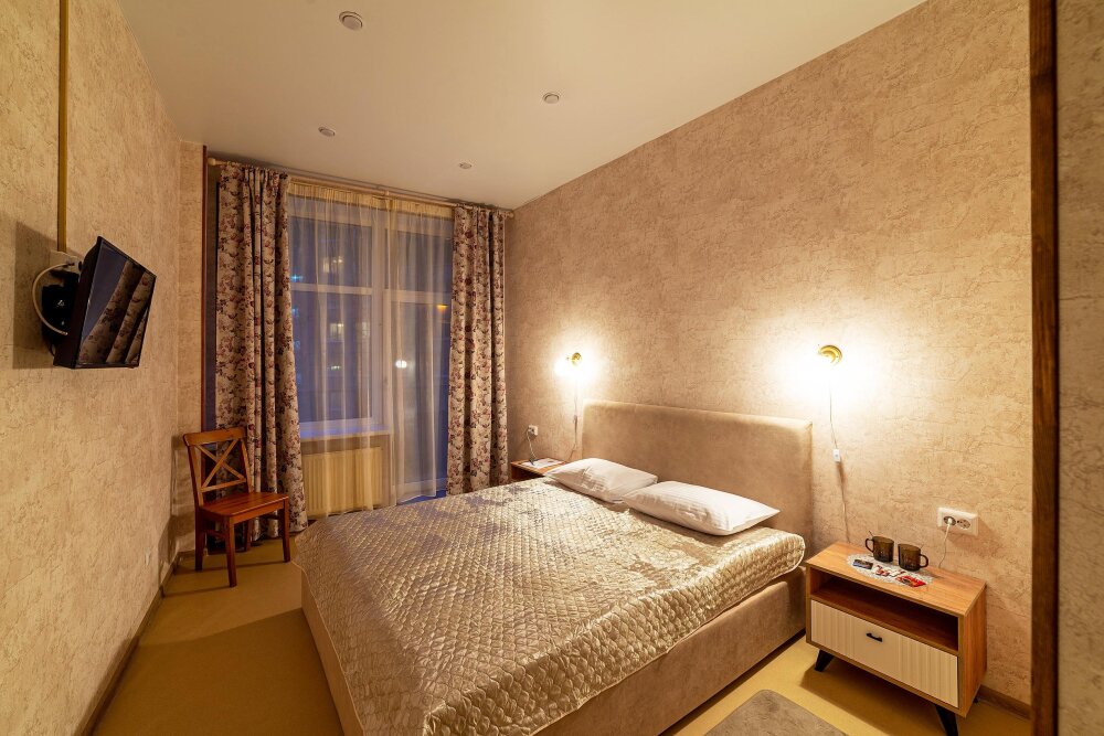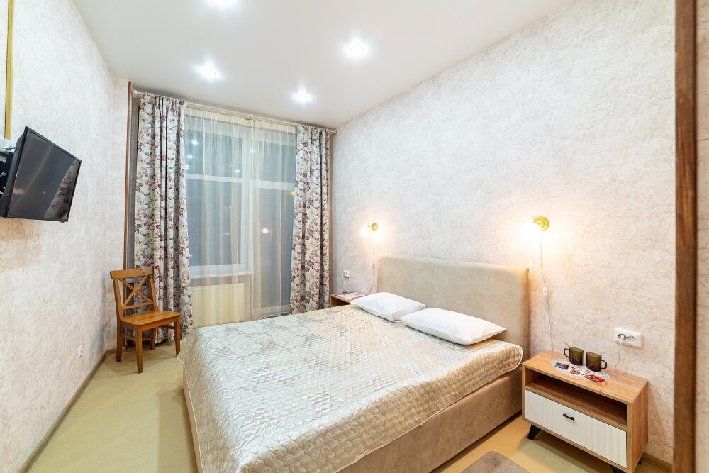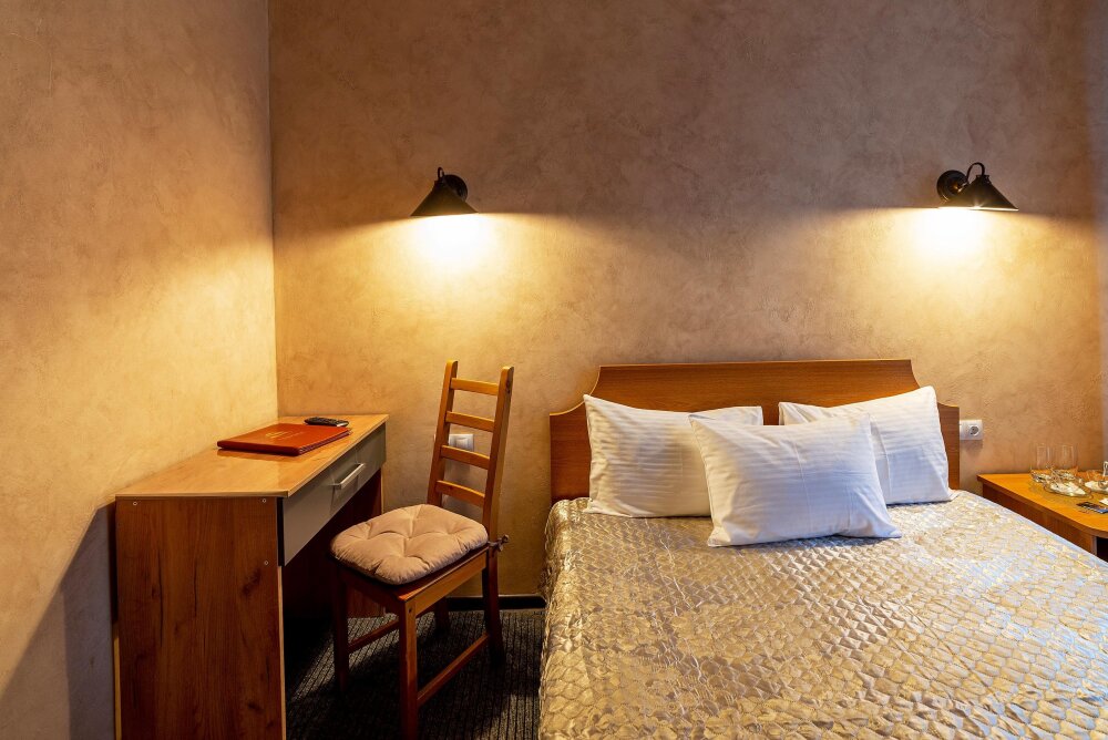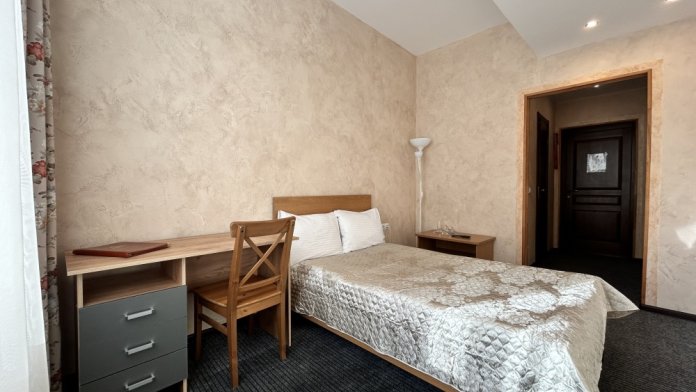 Гостиница полностью отремонтирована в 2017 году. В начале 2024 года в номерах гостиницы сделан свежий косметический ремонт. Светлые номера оформлены в теплых тонах. У нас удобные ортопедические матрасы и белоснежное сатиновое постельное белье, отличная звукоизоляция и плотные шторы на окнах для тех, кому важно хорошо выспаться в деловой поездке или на отдыхе.