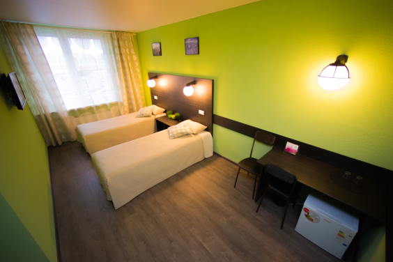 Двухместный номер «Комфорт TWIN» мини-гостиницы «Космос» имеет площадь большего размера, стилистическое оформление, а также отличается повышенным уровнем комфорта и площадью.
