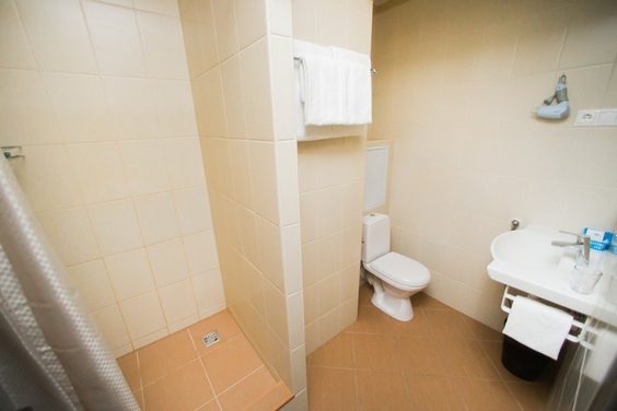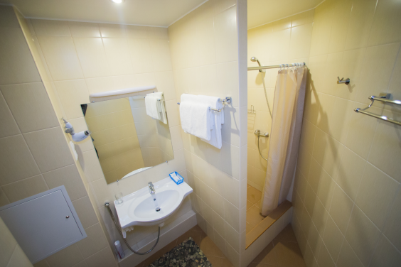 Санузел с душем и туалетом не в номере, но никто кроме гостей данного номера им не может пользоваться.