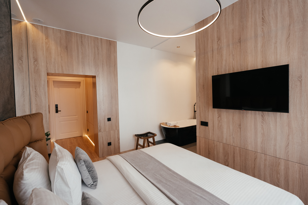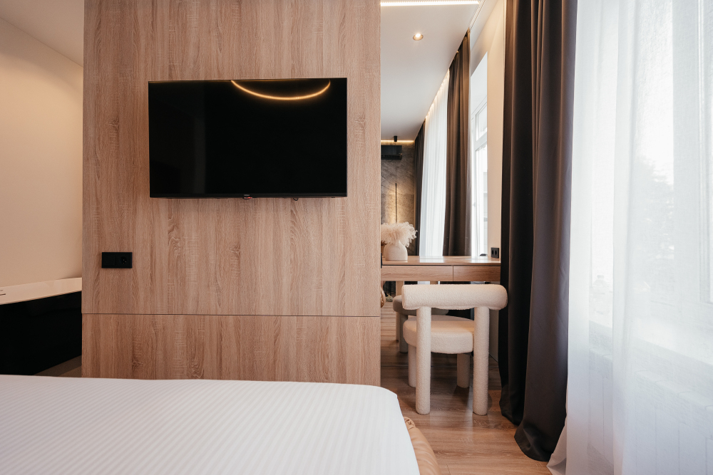 В отеле для гостей бесплатный Wi-Fi. В уютном бутик-отеле есть как стандарты, так и номера категории комфорт и полулюкс. Каждый из номеров оснащен всем необходимым для размещения гостей. Светлый современный дизайнерский интерьер и продуманность каждой детали. Для удобства гостей номера оснащены телевидением, письменным столом и гладильными принадлежностями. Также в них предусмотрено наличие фена, халатов и тапочек.