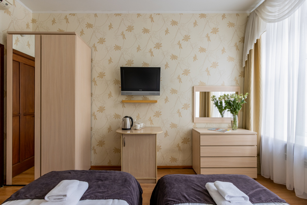 - Дополнительное спальное место - раскладная кровать, предоставляется по запросу и при наличии возможности за дополнительную плату: с 01.04 по 30.09 и с 29.12 по 08.01 размер доплаты составляет 1300 руб. в сутки, в остальные даты дополнительная кровать предоставляется бесплатно.