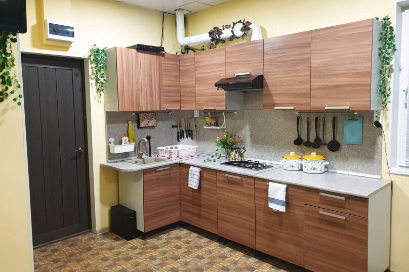 Большой, новый, комфортный дом с четырьмя спальнями и кухней-гостиной с диваном. Дом спокойно вместит в себя до 10 взрослых людей. В доме 4 спальни, гостиная с двуспальным диваном, кухня, санузел с ванной, терраса с мангалом и большой балкон. Все комнаты с телевизорами и постельным бельём. На кухне Вы найдете всё для приготовления пищи, есть плита, микроволновая печь, необходимая посуда посуда и посудомоечная машина. На первом этаже везде теплый пол. Комфортно будет с детьми. Для малышей есть детская кроватка, стульчик для кормления и шезлонг-качалка. Также, к услугам гостей отпариватель, фен, настольные игры, фильтрованная вода. В нашем комфортном доме Вас ждет все необходимое для отдыха.