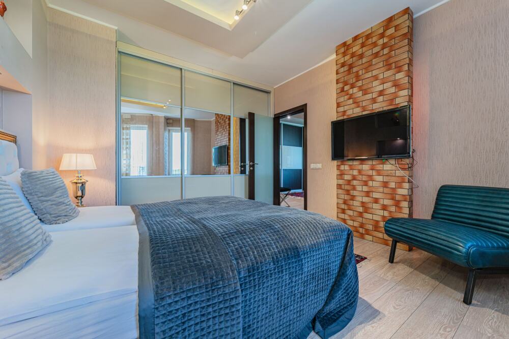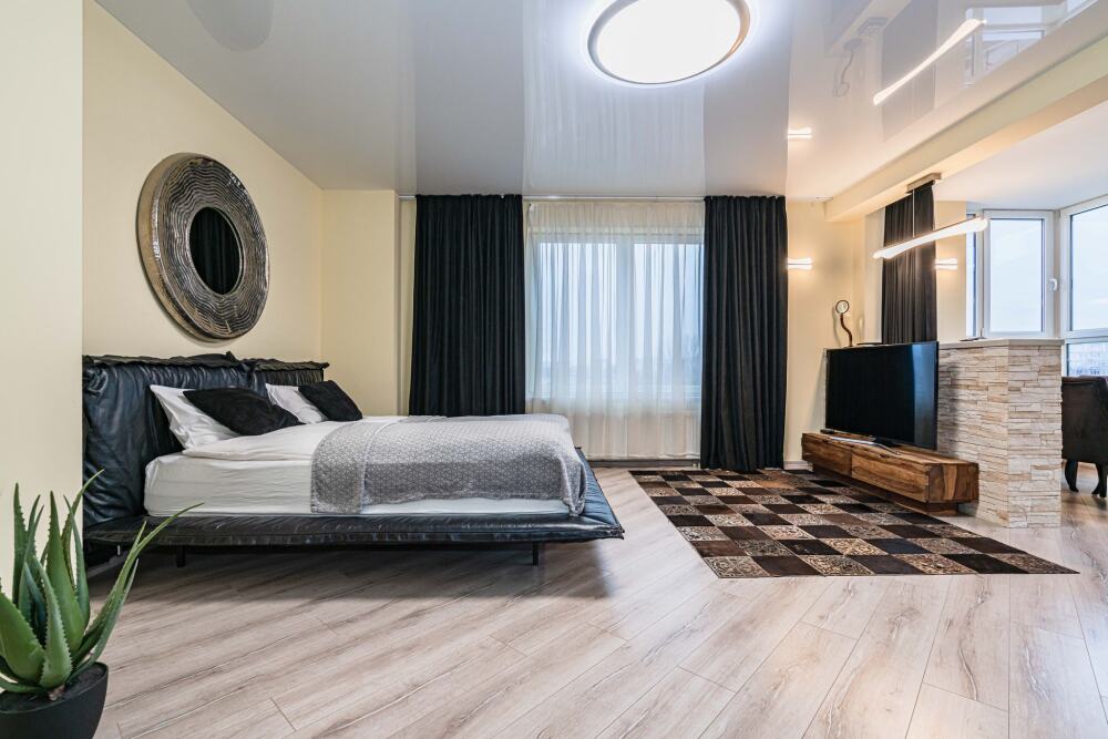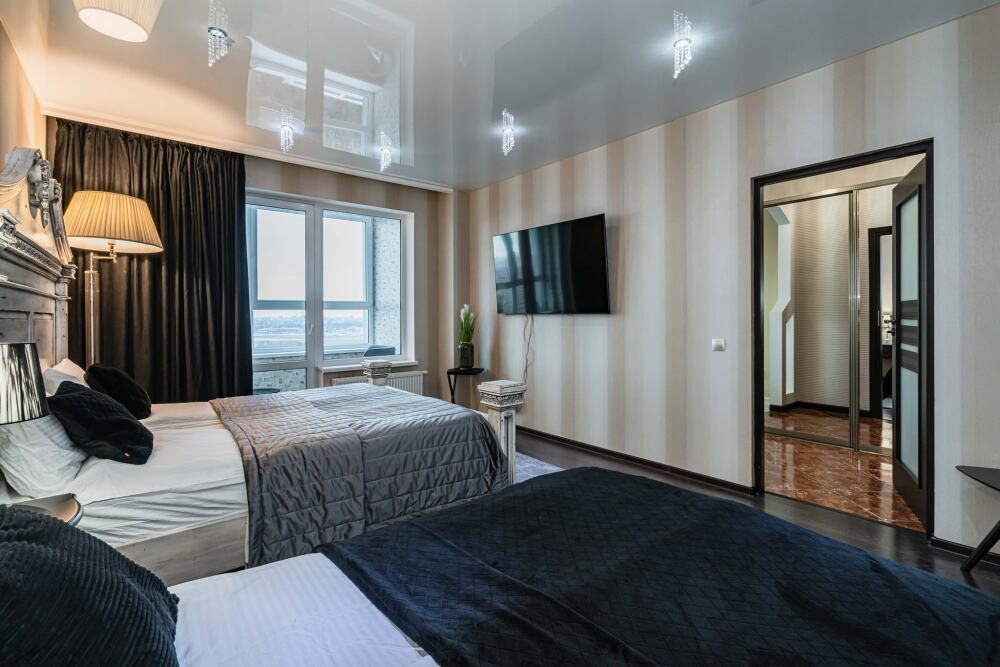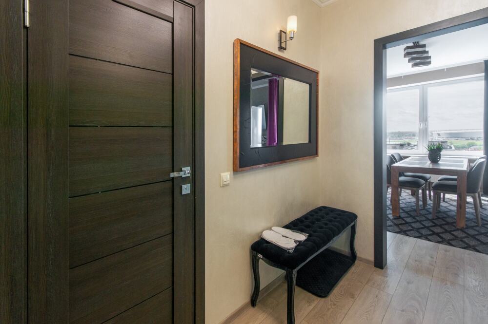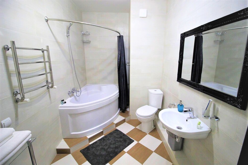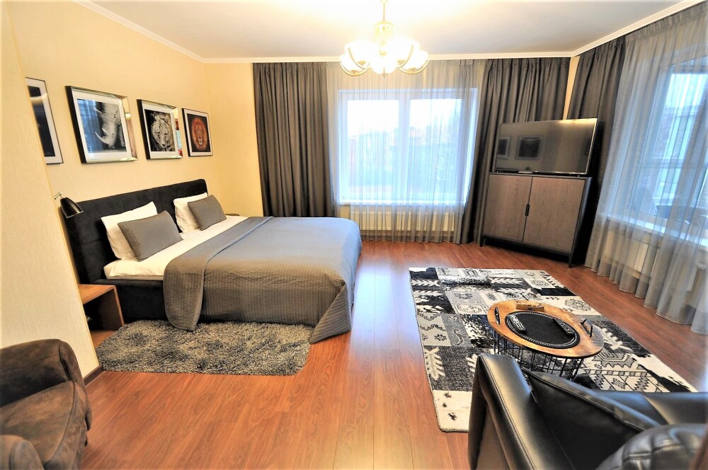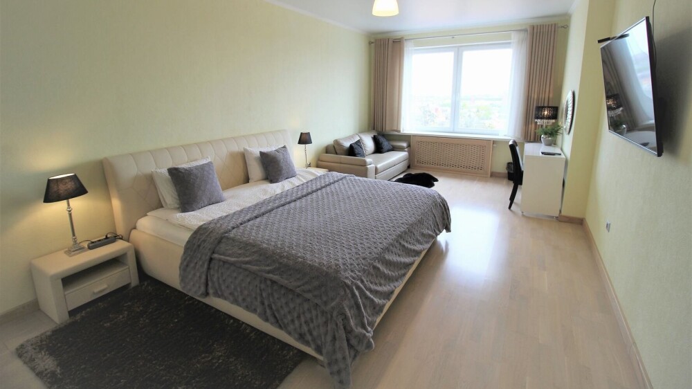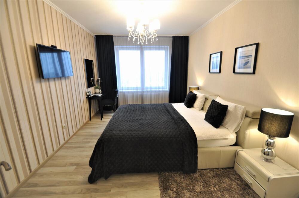 Комфортабельные апартаменты оснащены удобной мебелью, рабочим столом, плазменным телевизором, скоростным Wi-Fi и ванной комнатой с комплектом полотенец.