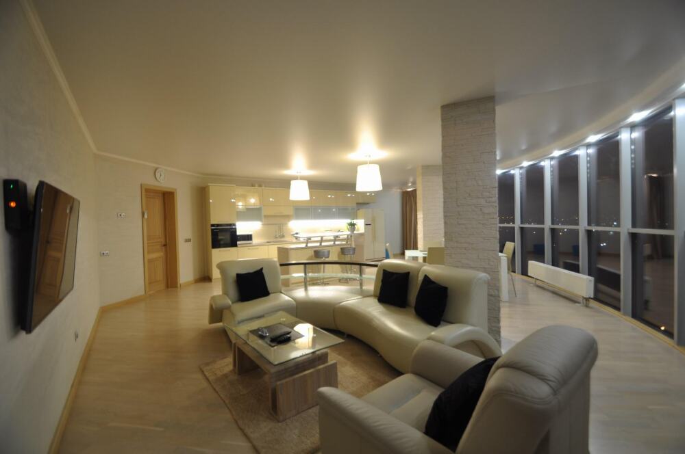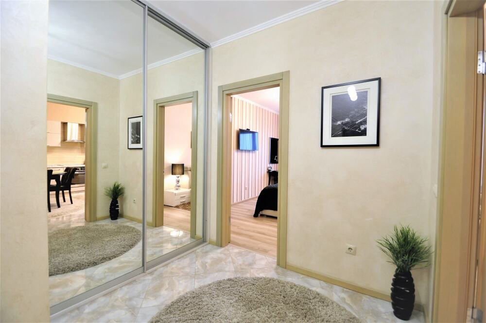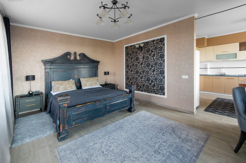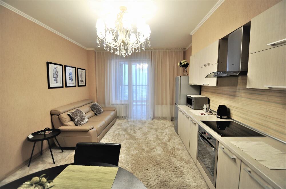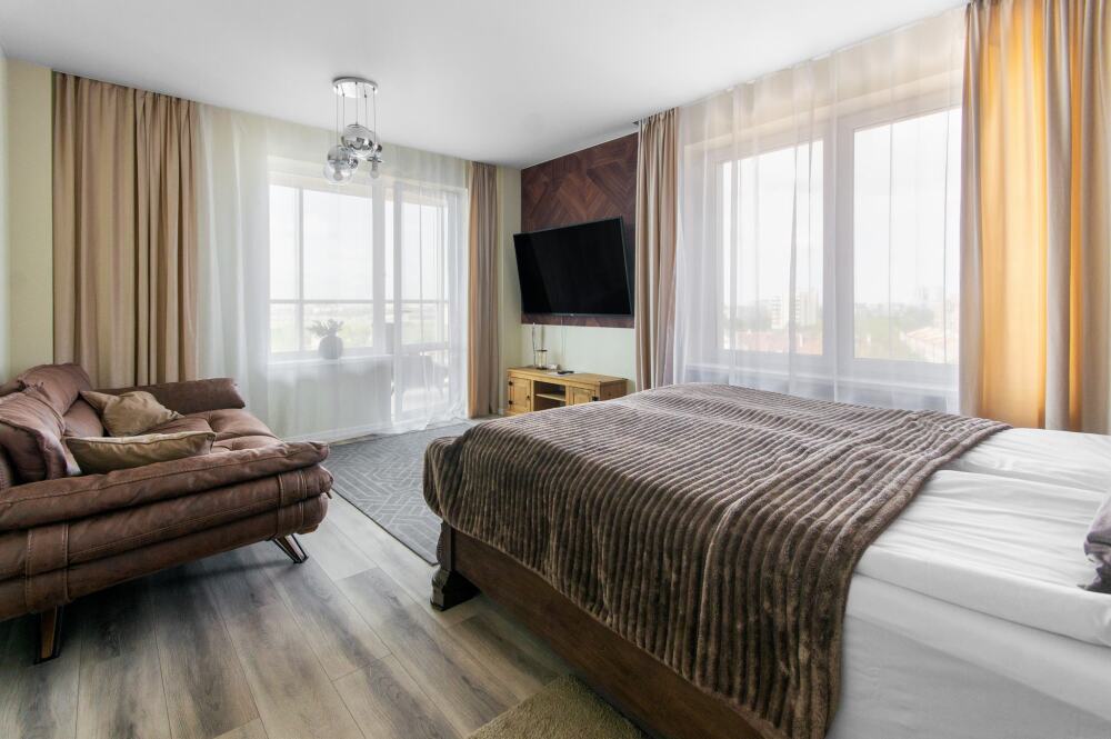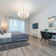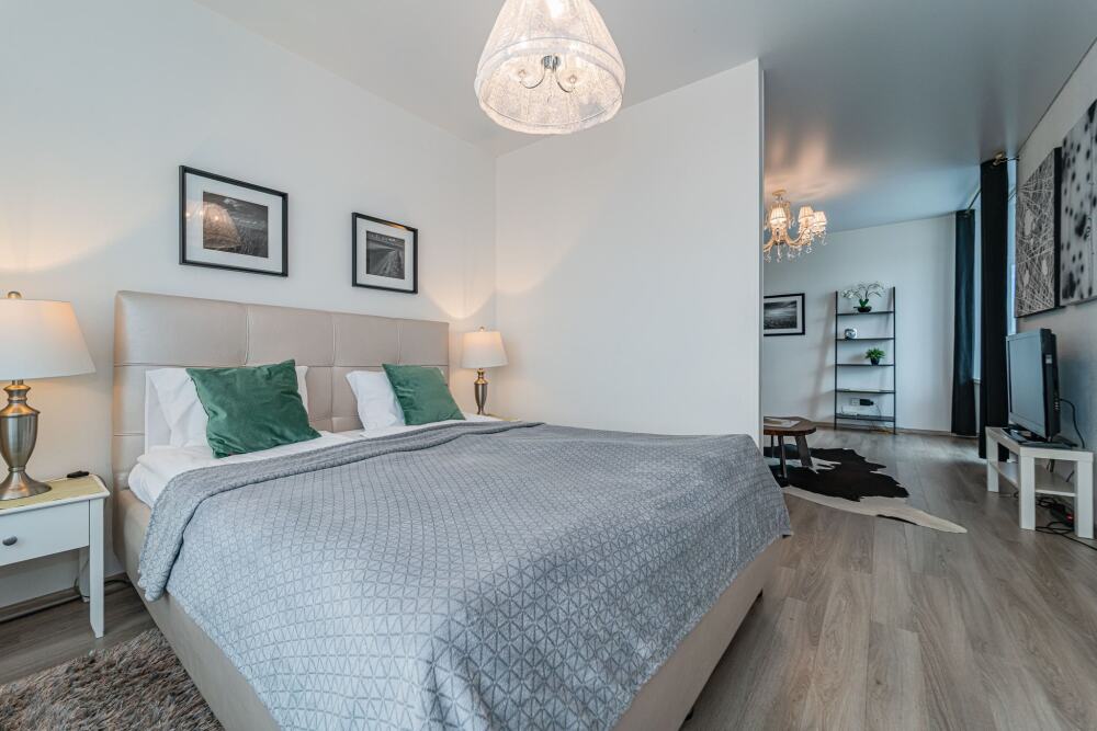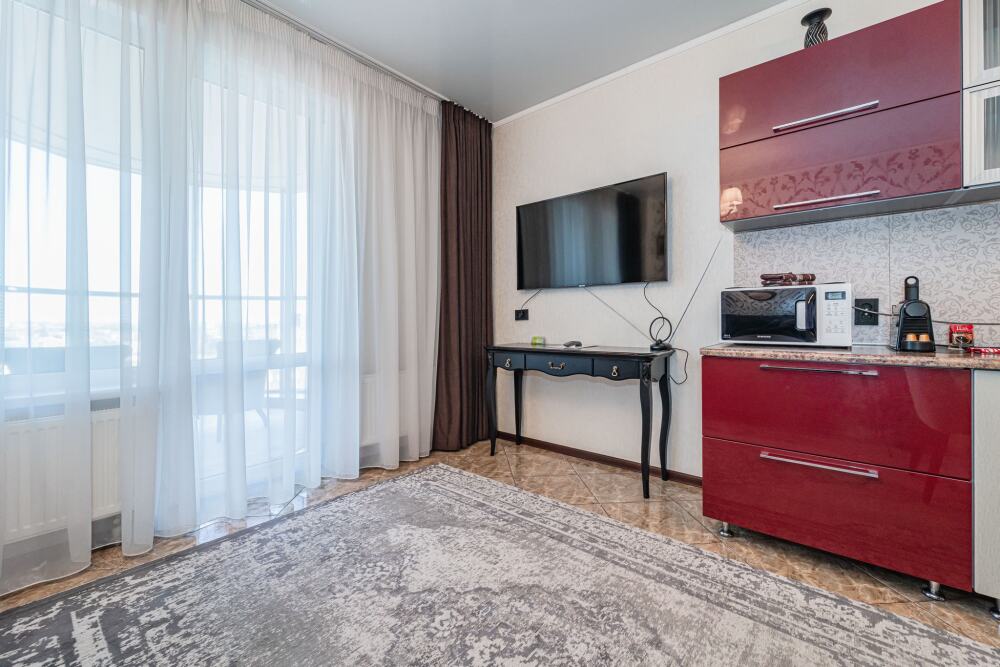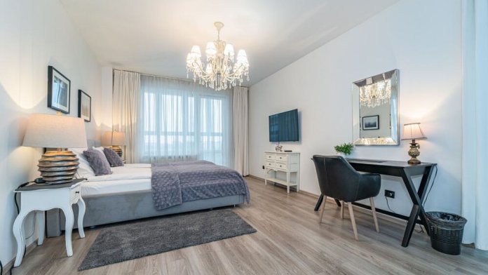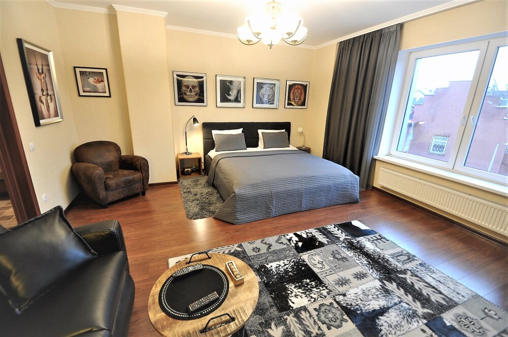 Комфортабельные апартаменты оснащены удобной мебелью, рабочим столом, плазменным телевизором, скоростным Wi-Fi и ванной комнатой с комплектом полотенец.