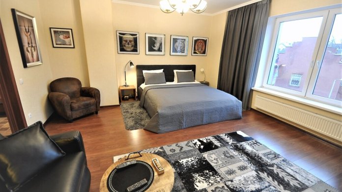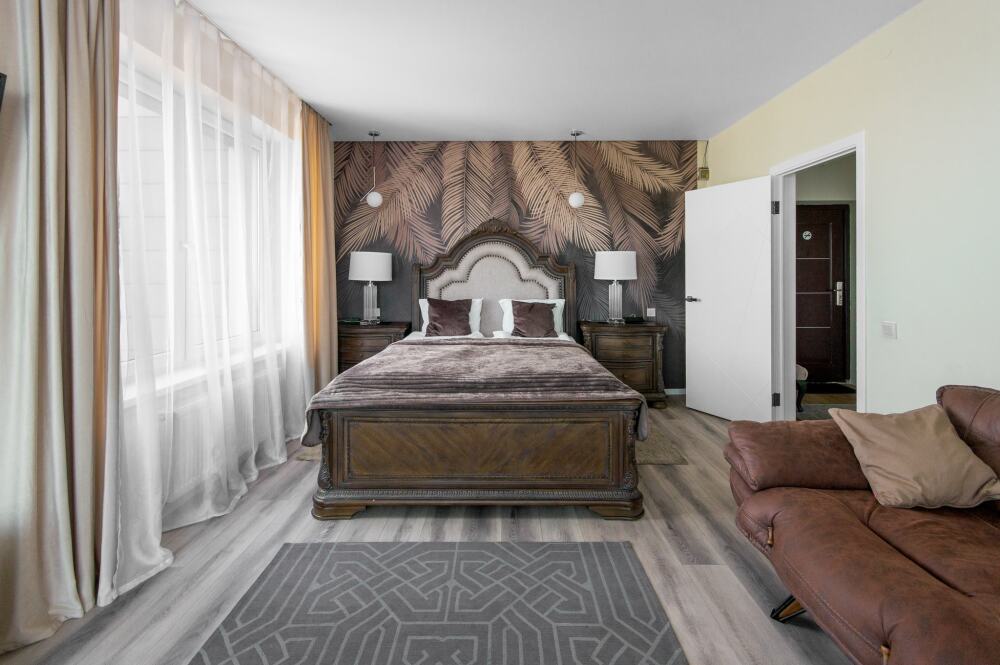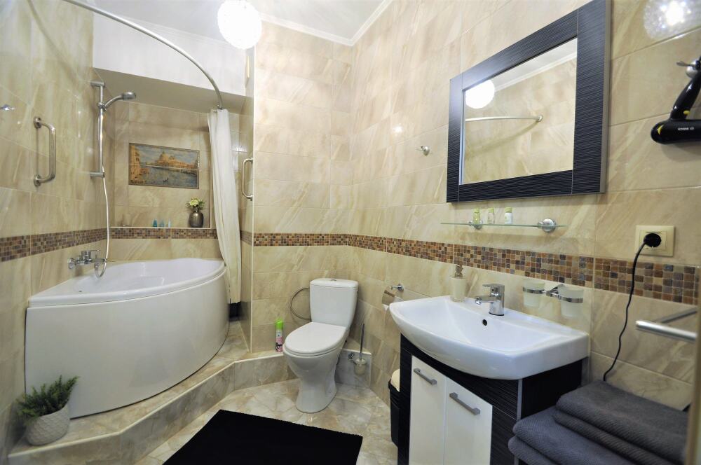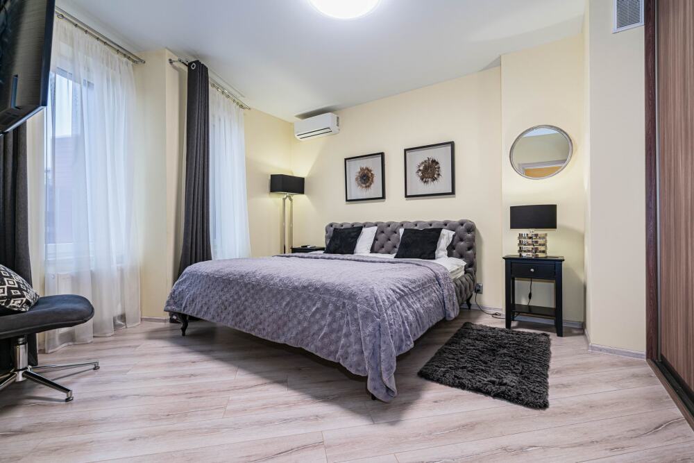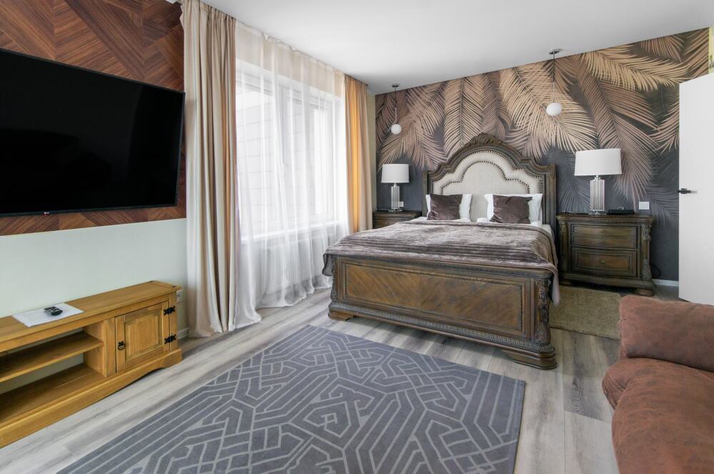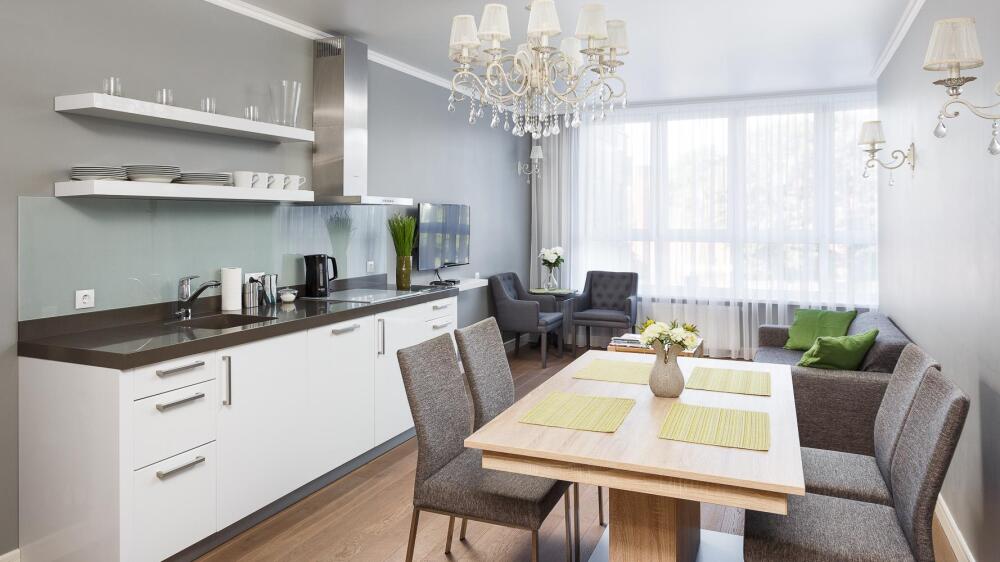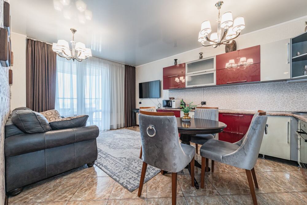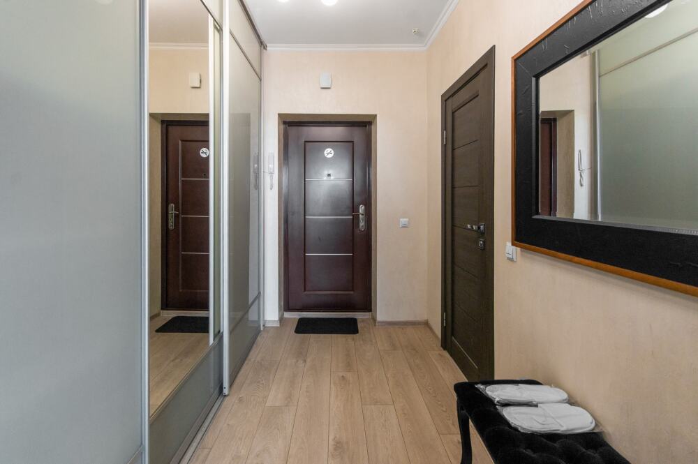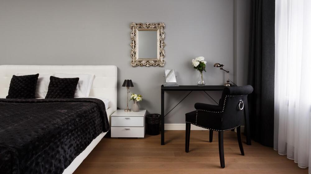 Комфортабельные апартаменты оснащены удобной мебелью, рабочим столом, плазменным телевизором, скоростным Wi-Fi и ванной комнатой с комплектом полотенец.