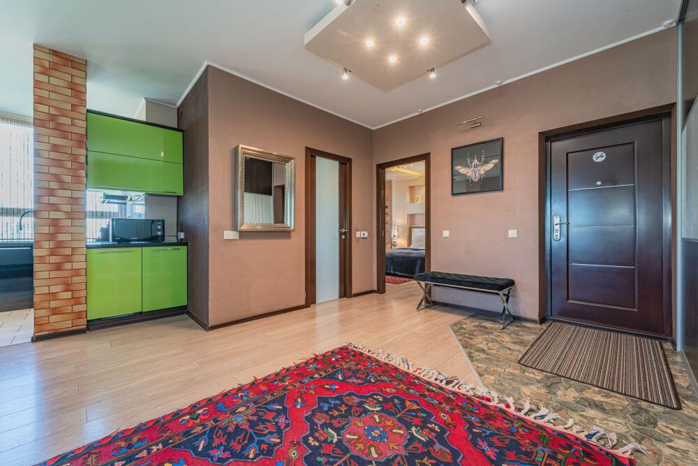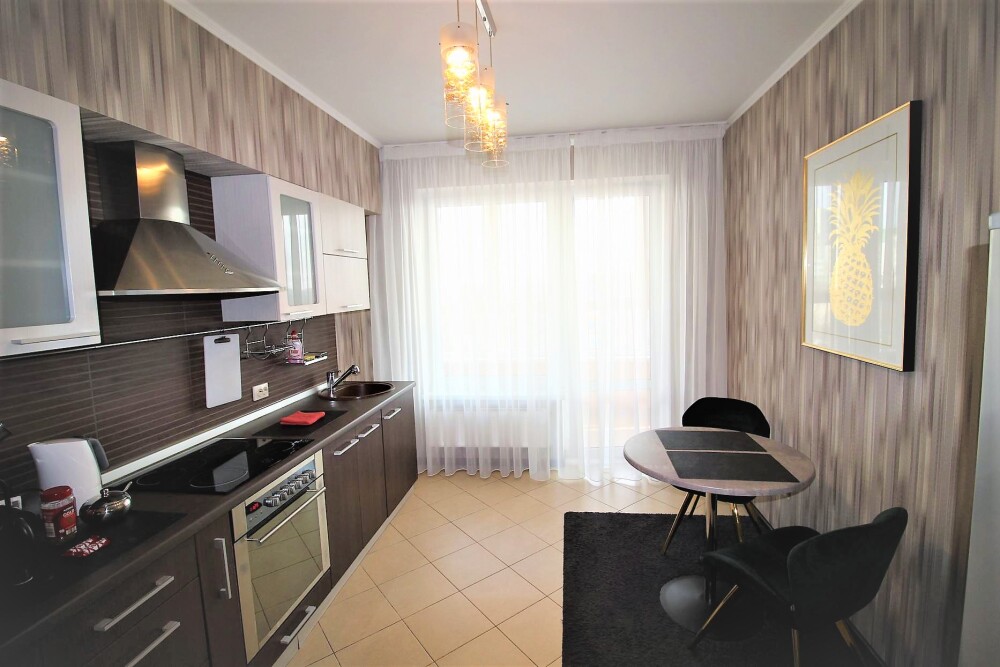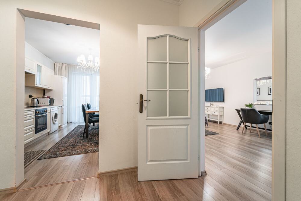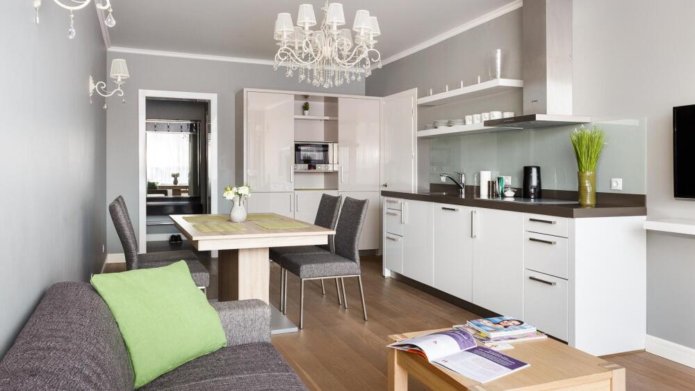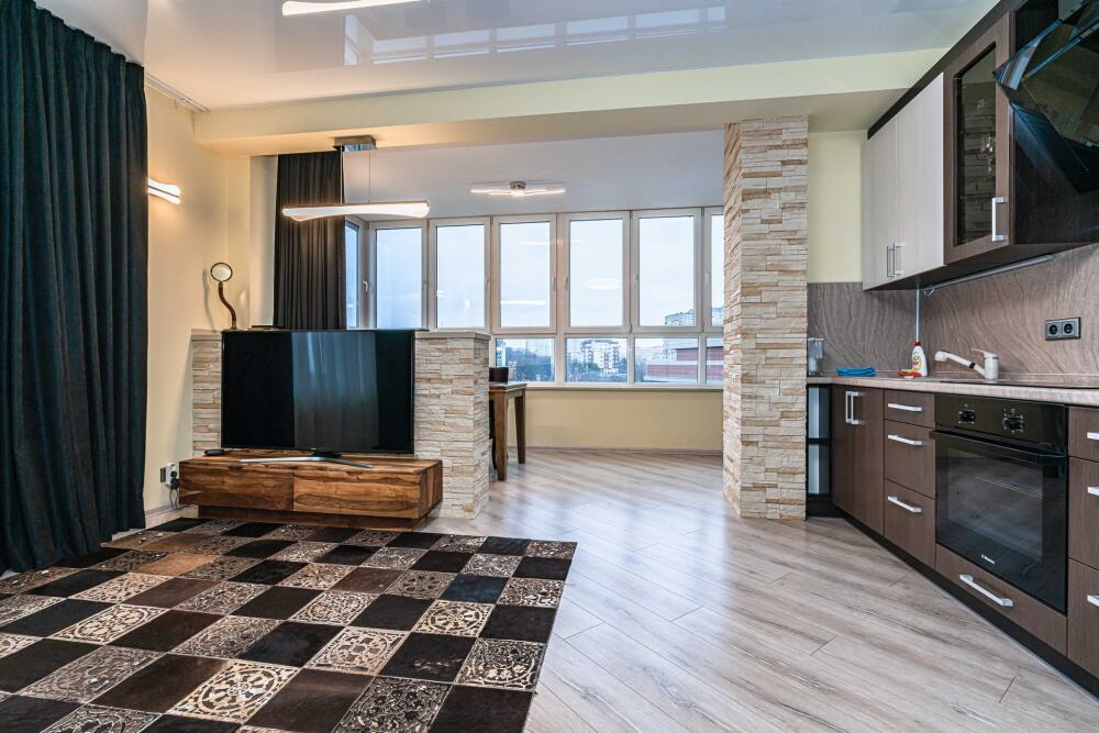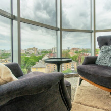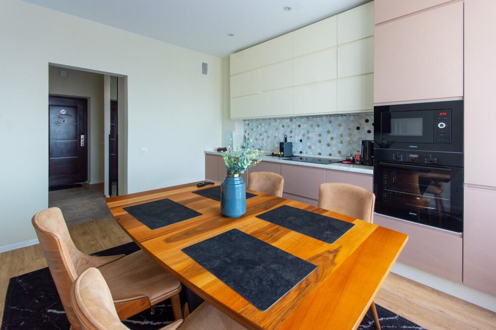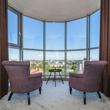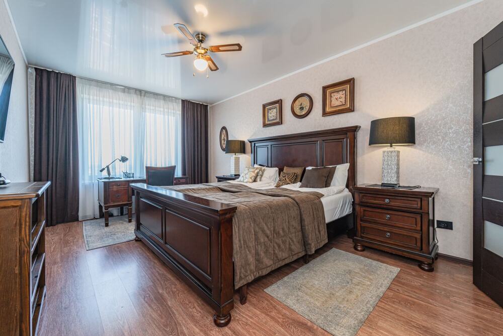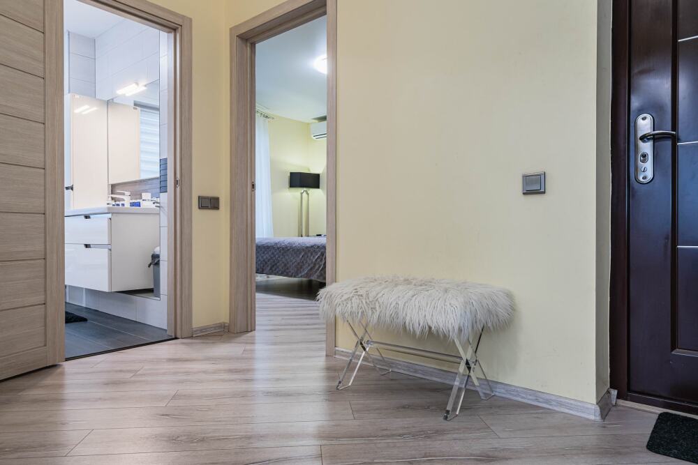 Комфортабельные апартаменты оснащены удобной мебелью, рабочим столом, плазменным телевизором, скоростным Wi-Fi и ванной комнатой с комплектом полотенец.