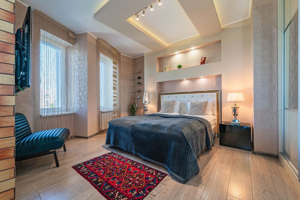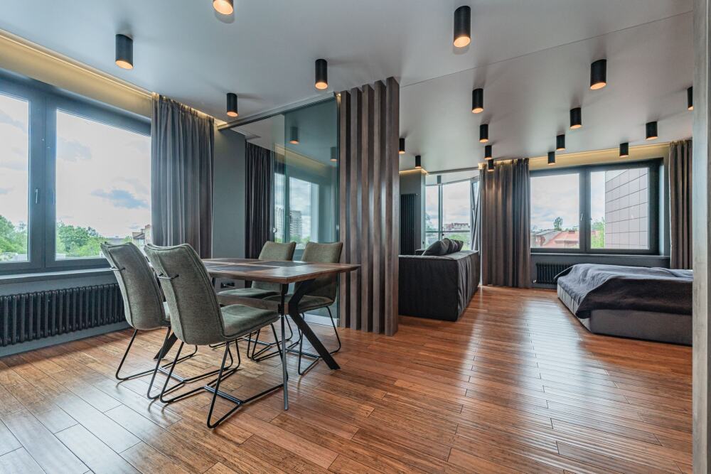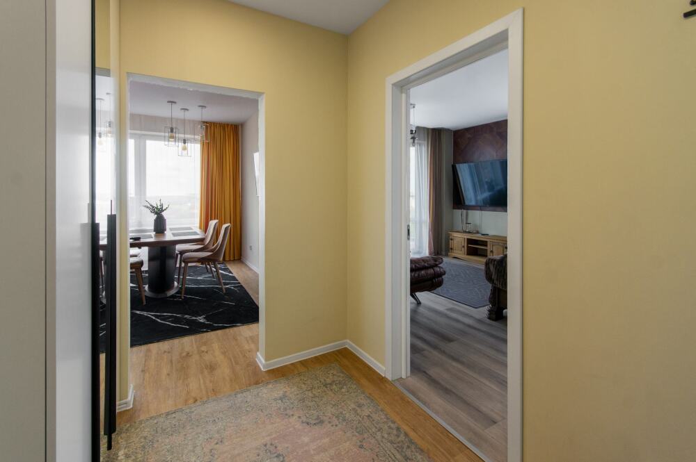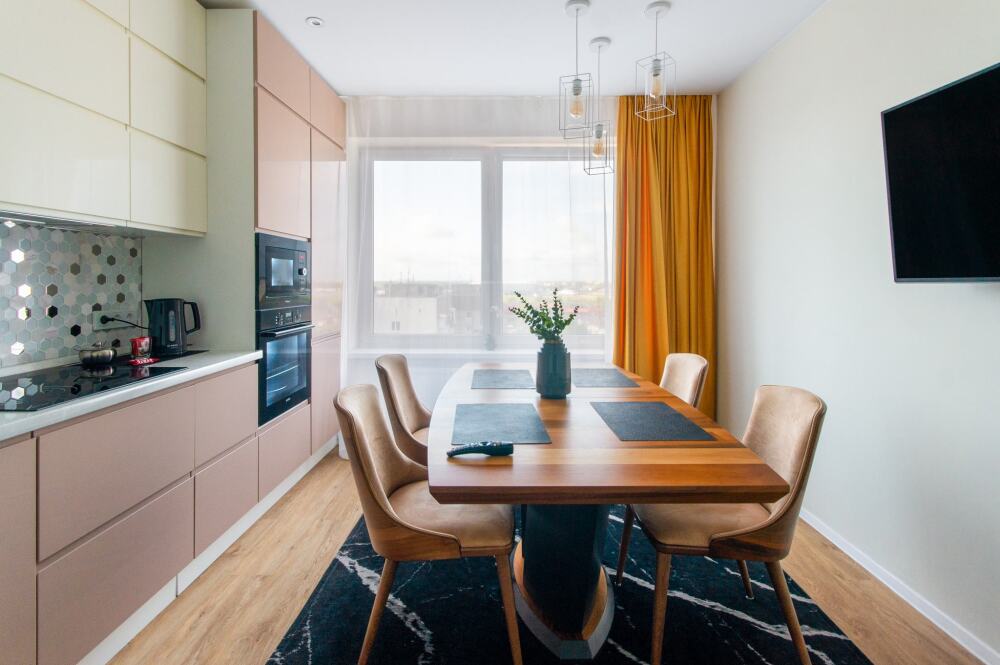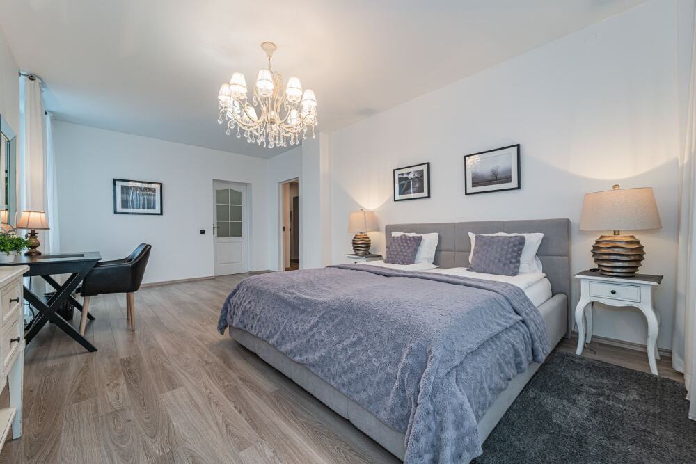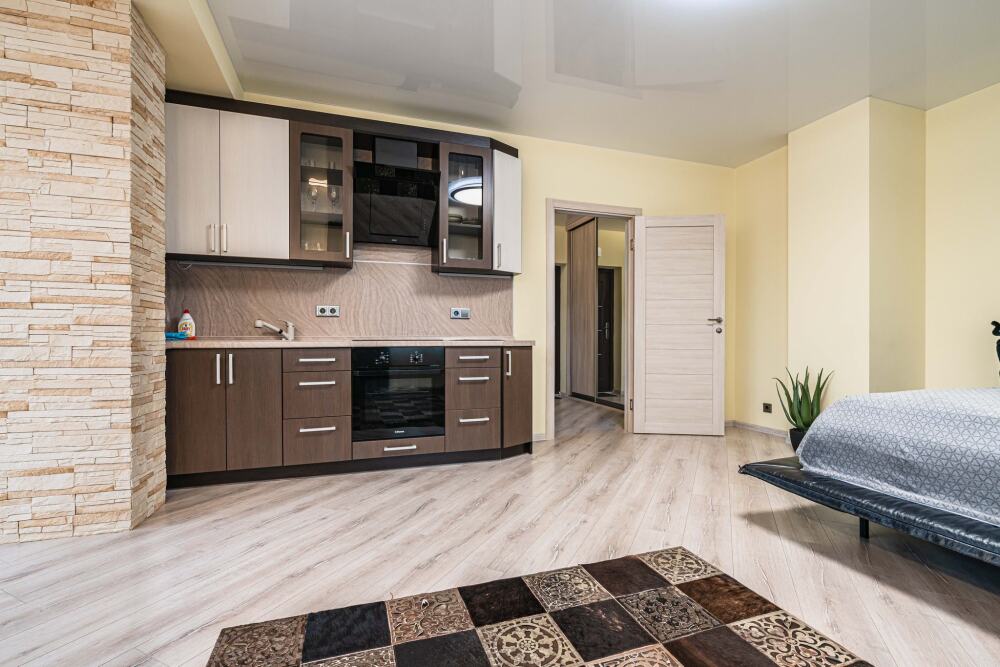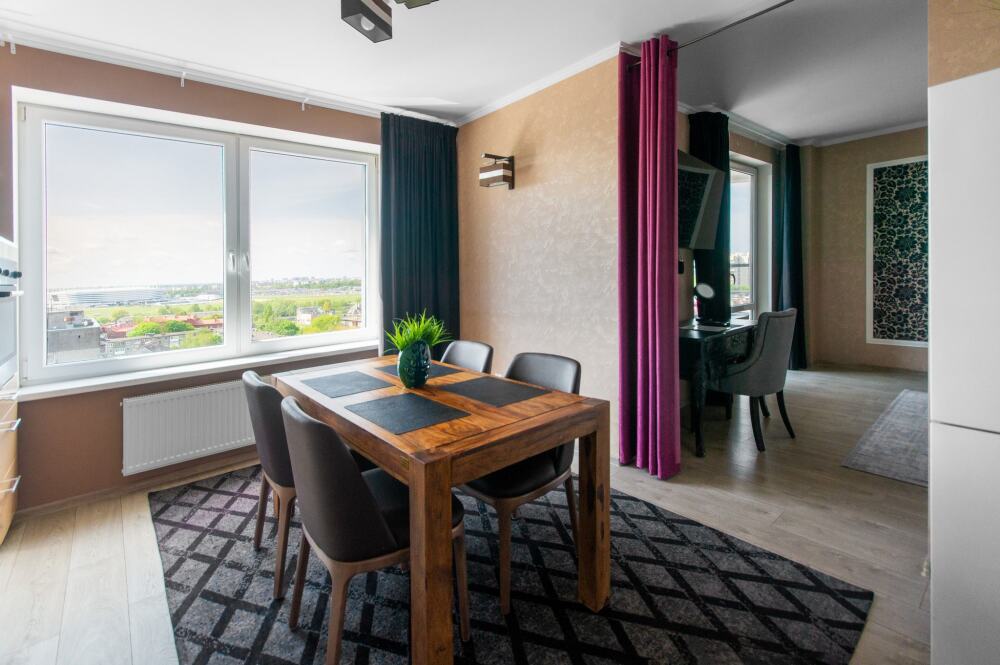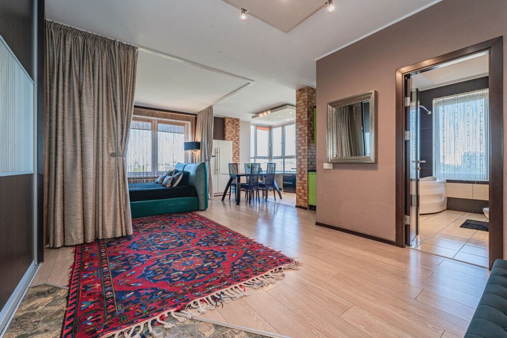 Комфортабельные апартаменты оснащены удобной мебелью, рабочим столом, плазменным телевизором, скоростным Wi-Fi и ванной комнатой с комплектом полотенец.