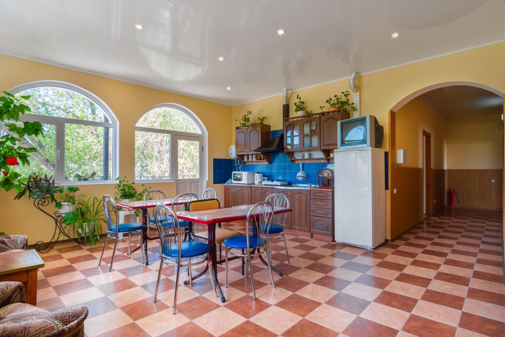 Можно вечером посидеть во дворе на свежем воздухе, пожарить шашлык или местную морскую рыбу. За окнами номеров слышны соловьиные трели. Не оставит равнодушными и пары которые хотят побыть наедине, наслаждаясь тишиной и отдыхом. Для них построен отдельный корпус со своим входом. Все номера имеют современную отделку, находятся на втором этаже, имеют шумоизоляцию, подходят для новобрачных и имеют общую террасу.
