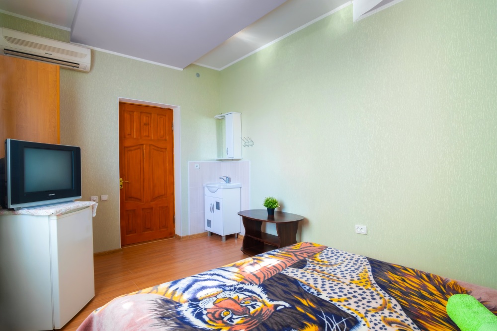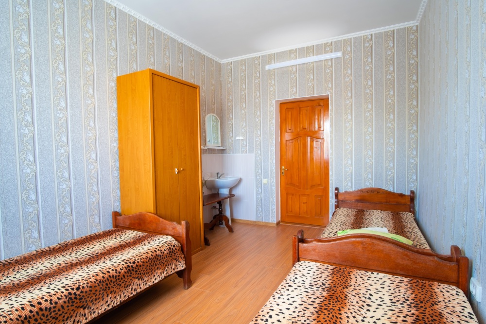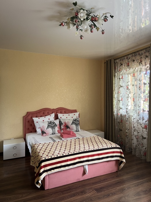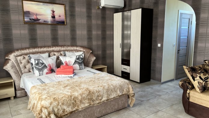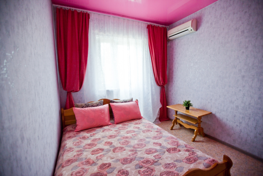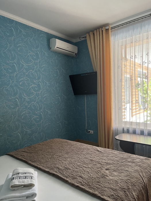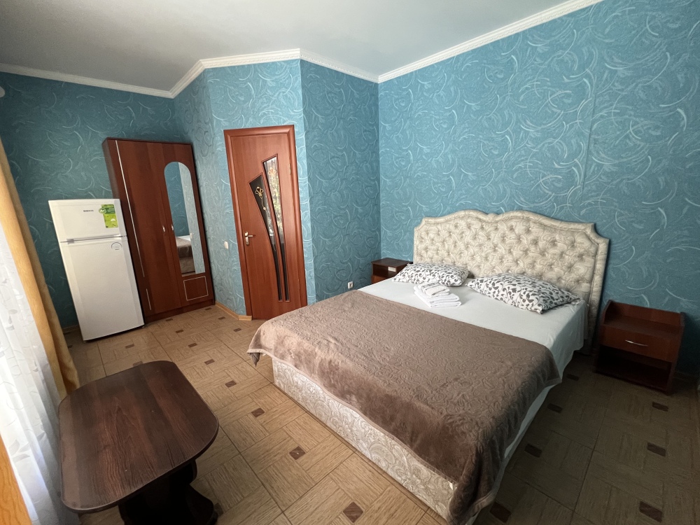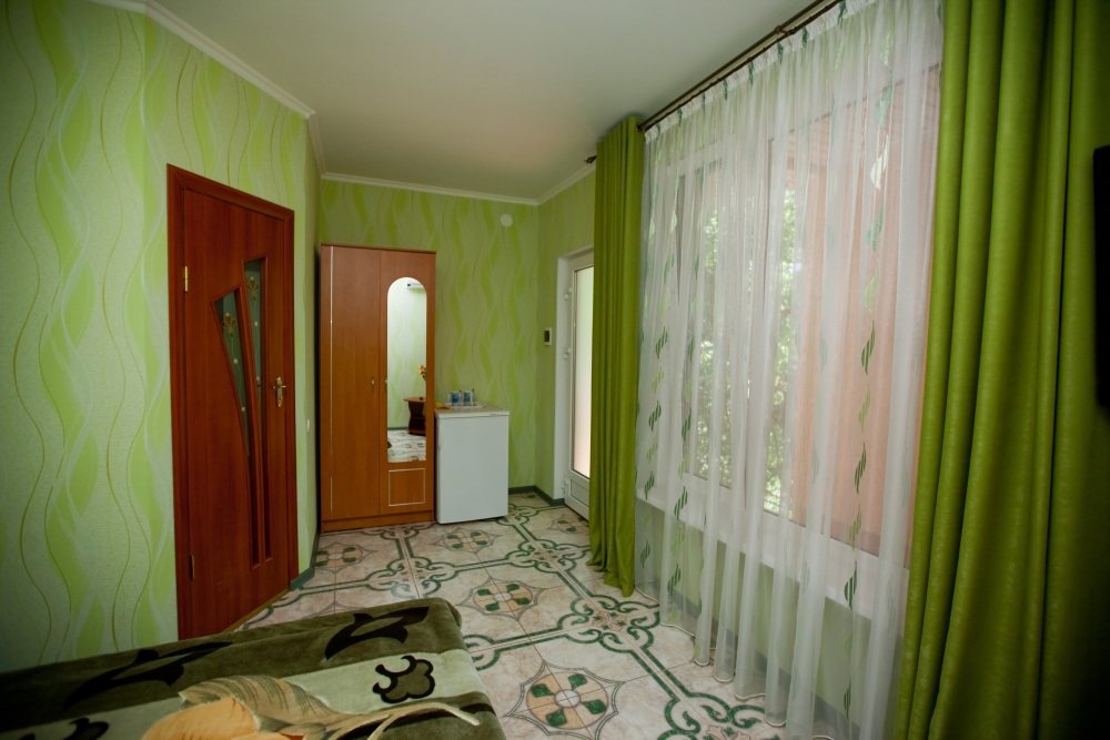 Номер «Царица» - шикарный, просторный номер, дизайн выполнен со вкусом, сами хозяева декорировали этот номер. Получил название «Царица» за оформление. Особенности: находится на 2-м этаже, имеет 2 больших окна и собственный балкон, где можно посидеть за столиком и полюбоваться садом. Большой холодильник и жк телевизор, чайник сделают проживание ещё более комфортным. Номер семейный говорит сам за себя. Часто бывает на стопе, бронировать рекомендуем заранее.