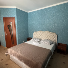 Номер «Звёздный» - название данного номера дали сами гости отеля. Это семейный люкс, полностью реновирован, и добавлена ванная комната с ванной, что особенно удобно для семей с детьми. Почему же «Звёздный»? Всё просто это из-за звёзд, которыми усыпан весь потолок. Номер получился звёздным в прямом смысле этого слова. Особенностью номера является также наличие двух окон, выходящих на балкон, вид на кроны деревьев. Выход на балкон через гостиную, там также расположена кухня, где можно что-то приготовить.
