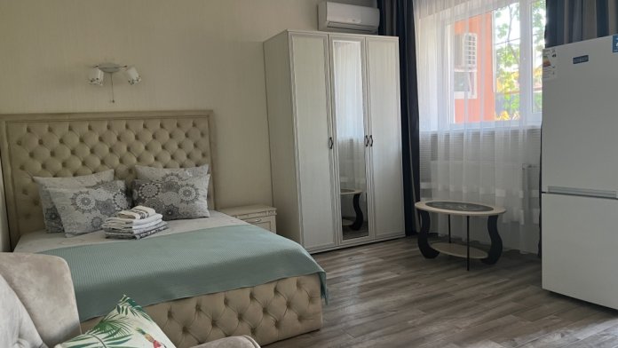 Апартамент «Баунти» - райское наслаждение, позвольте себе отдых, Вы это заслужили. Отдохнуть, набраться сил. Идеально подойдёт для семей с детьми, расположен на 1-м этаже, имеется своя территория с видом на сад и своя зона отдыха. Кухня расположена внутри, а столики и стульчики на улице на свежем воздухе. Приезжайте увидите сами.