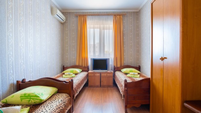 Номер «Твикс» - номер со смыслом. Две палочки твикс, как в шоколадке. Такое название получил, так как здесь установлены две раздельные кровати. Приятный номер, выполненный в спокойных тонах. Имеет интересное название и пользуется спросом, так как один такой в своей категории. Все остальные номера с большими двухспальными кроватями, а здесь две полуторные. Материал из которого сделаны кровати - дуб. Номер находится на втором этаже, напротив номера «Кокос». Часто бронируют семьи: в одной комнате живут родители, другой дети. Душ и туалет общие на два номера, на этаже.
