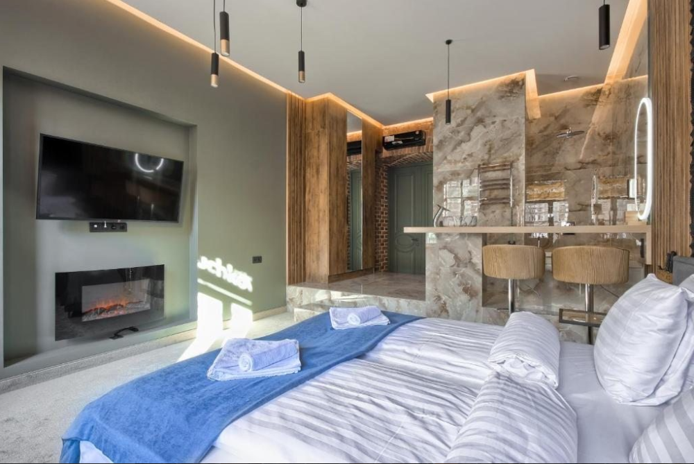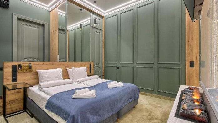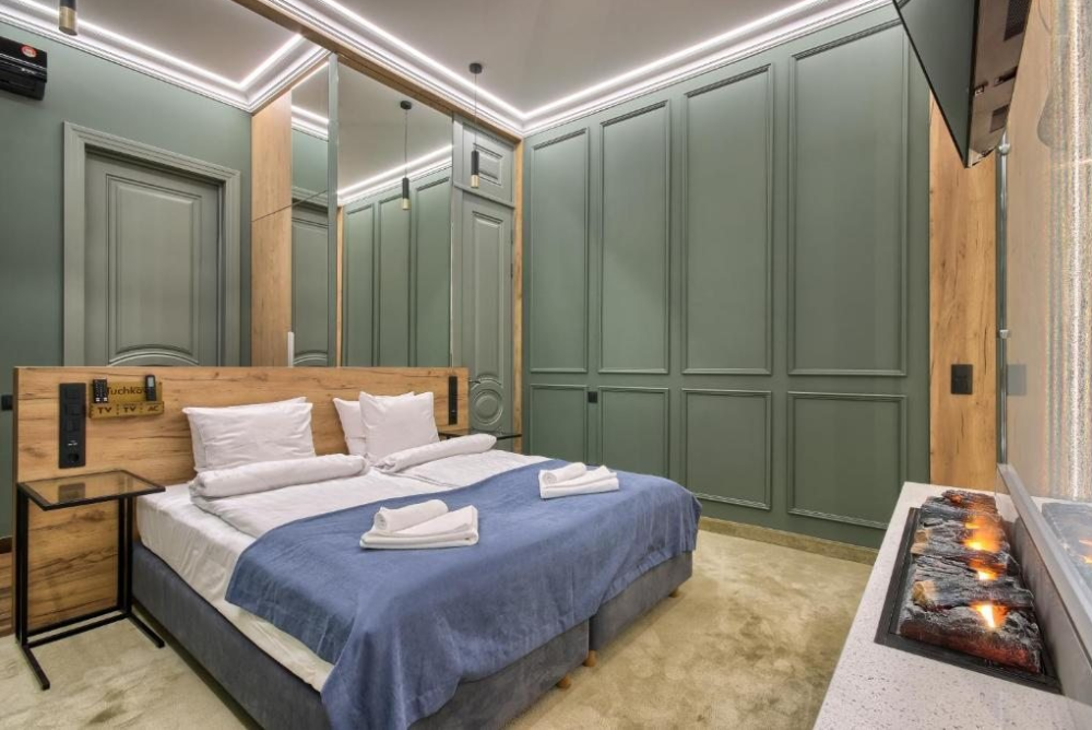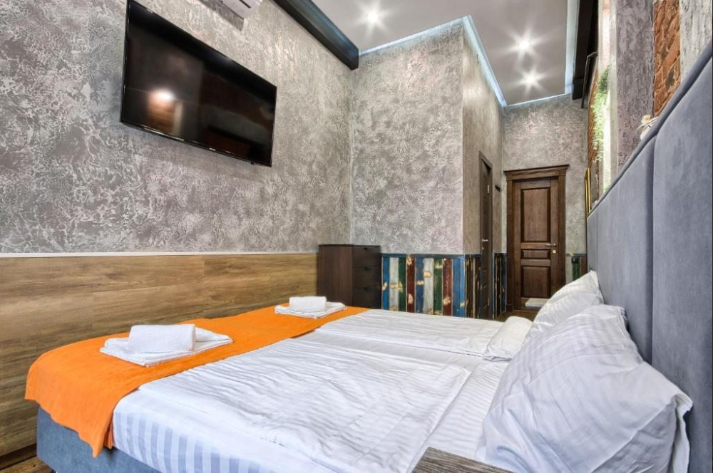 В номере одна двуспальная кровать или 2 односпальные.