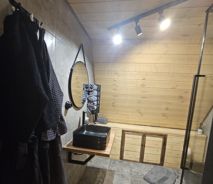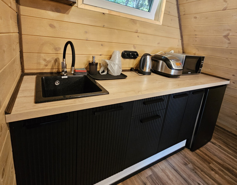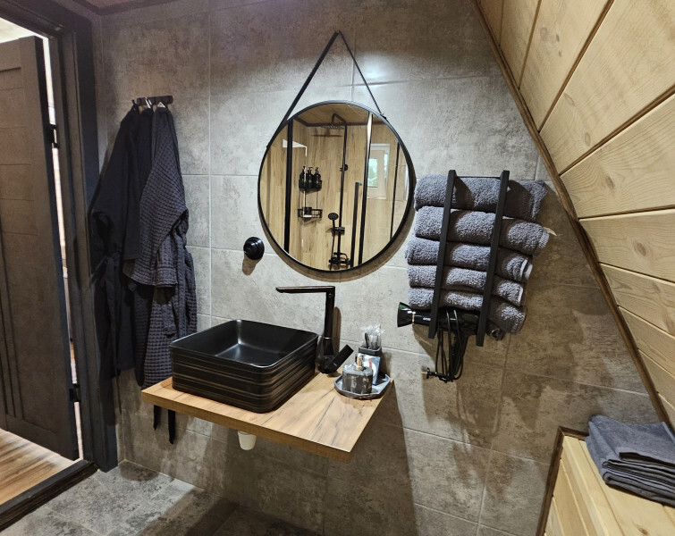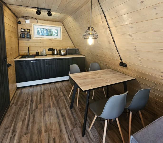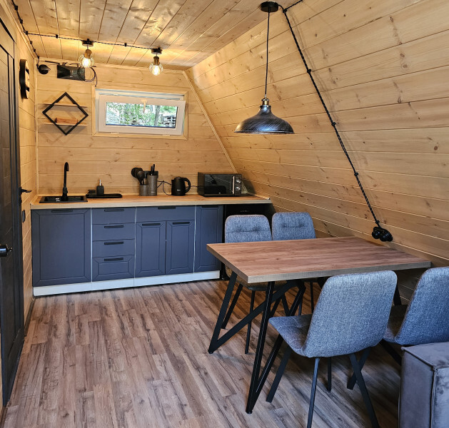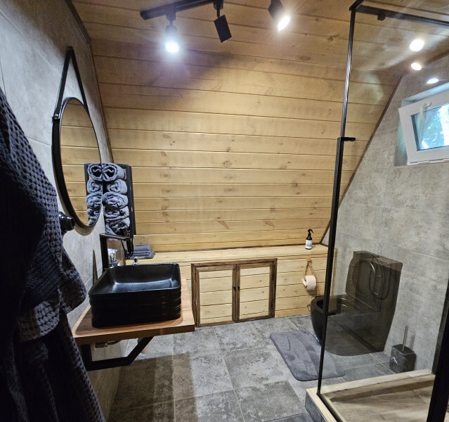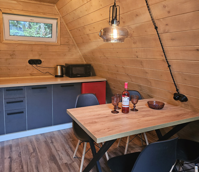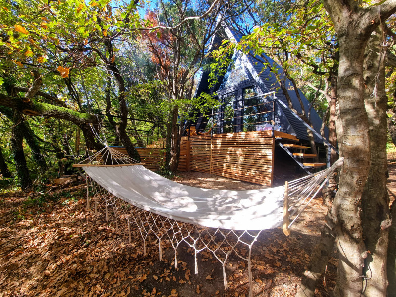В лесной прохладе расположились 4 чудесных панорамных домика с видом на море. Эстетическое удовольствие Вы получите сразу, переступив порог домика: декор, натуральное дерево, мебель и аксессуары ручной работы. Для комфортного отдыха на природе есть все необходимое: