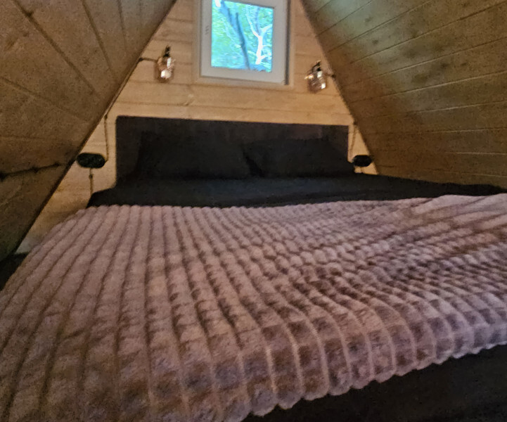- удобный матрас в спальне шалашике и стильное постельное бельё;