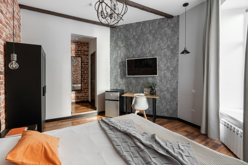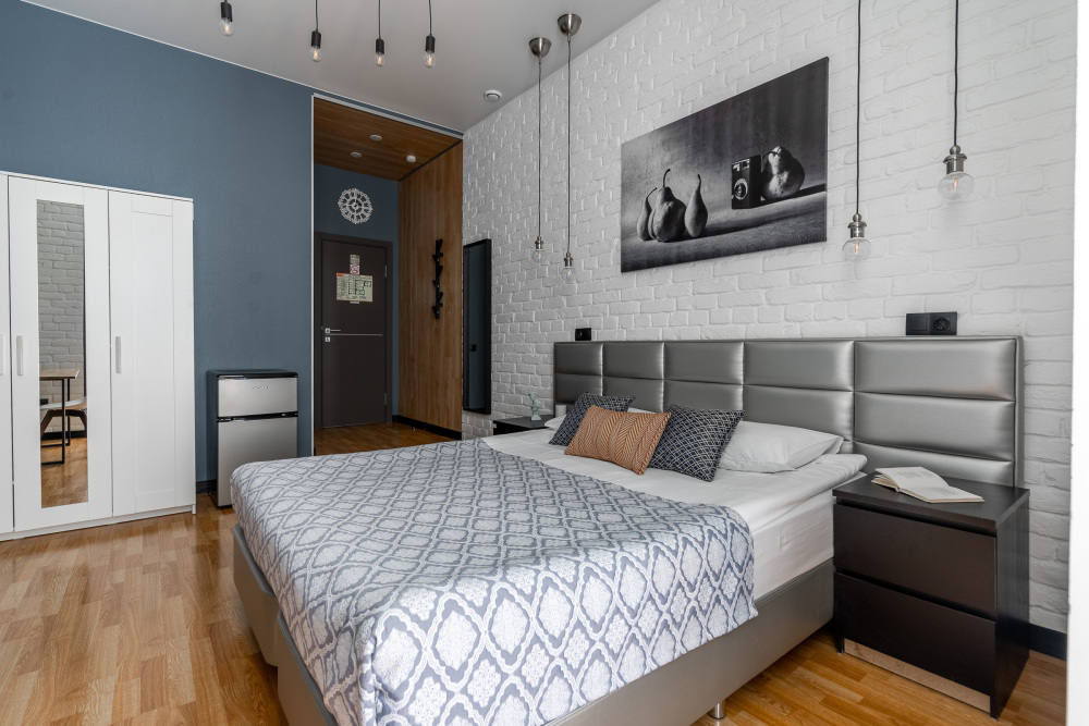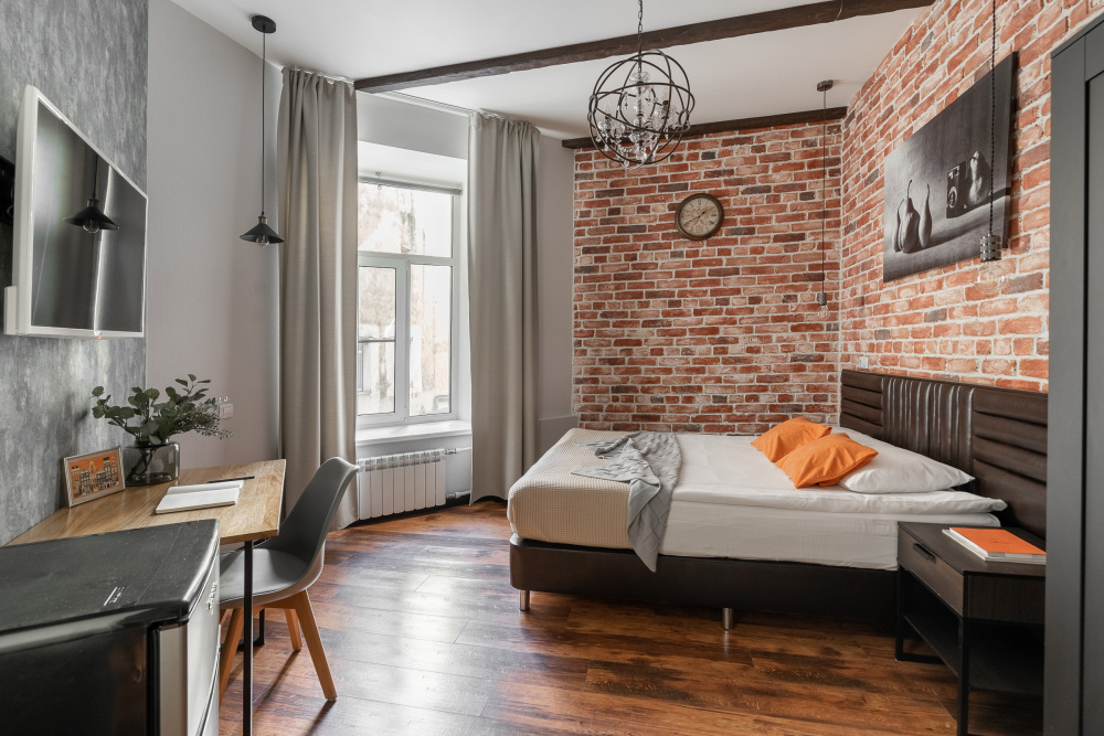 10 дизайнерских комнат в стиле Лофт. Каждая комната выполнена в индивидуальном стиле, с собственным сан-узлом и душевой кабиной.