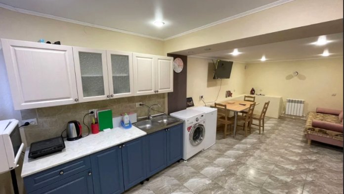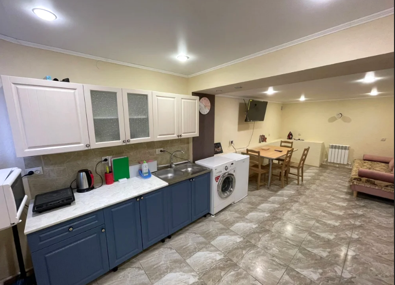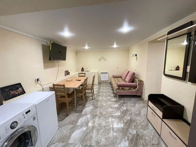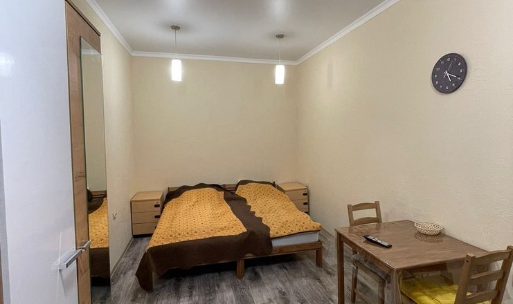 К услугам гостей 2 отдельных апартамента, со всем необходимым для проживания и отдыха. В каждой квартире: санузел с душем, свежий ремонт, новая техника и мебель. Шкаф для одежды, полотенца двух видов на человека, тапочки одноразовые. Посуда, сковородки, кастрюли, ложки, вилки, чайные стаканы, стаканы для сока, тарелки разные, микроволновая печь, чайник. Телевизор, бесплатный интернет Wi-Fi. Горячая вода и отопление своё, без перебоев. Окна квартир выходят на внутренний дворик.