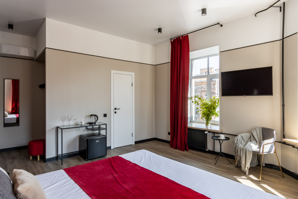 Тщательно подобранные материалы и расслабляющие цвета, изысканный ресторан, центральное расположение и великолепный сервис - вот, что сделает Ваше пребывание в бутик-отеле не только комфортным, но и незабываемым!