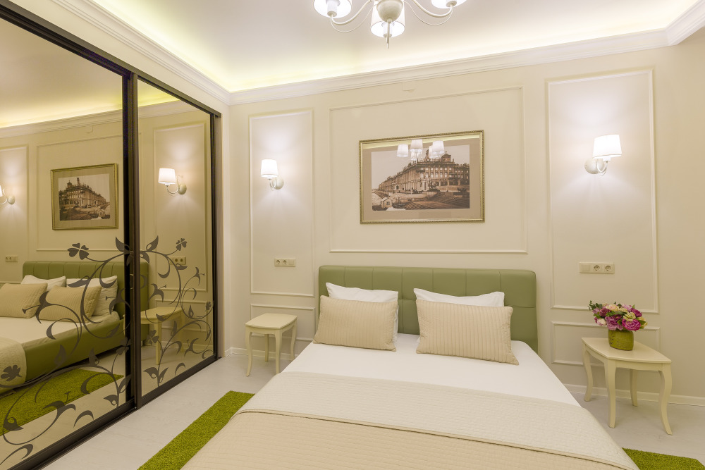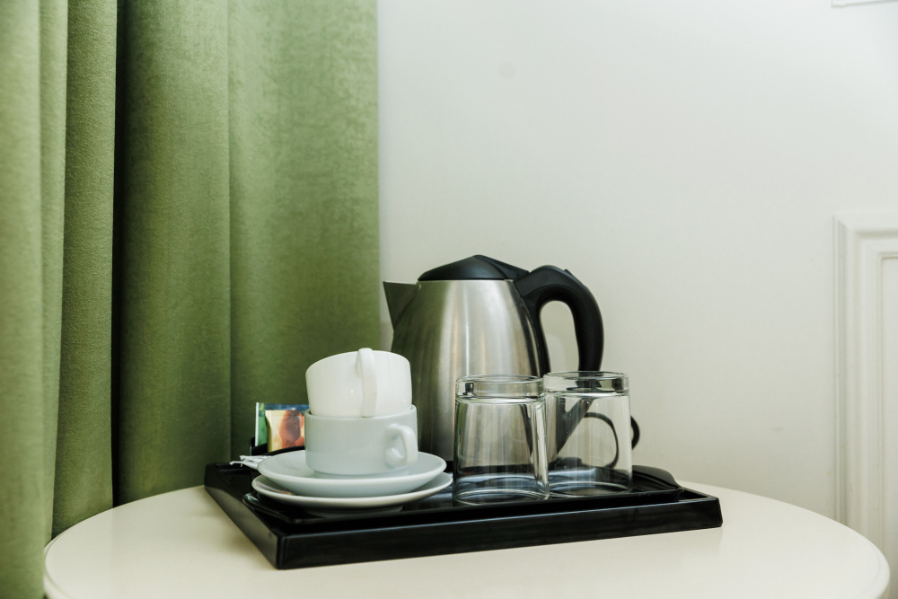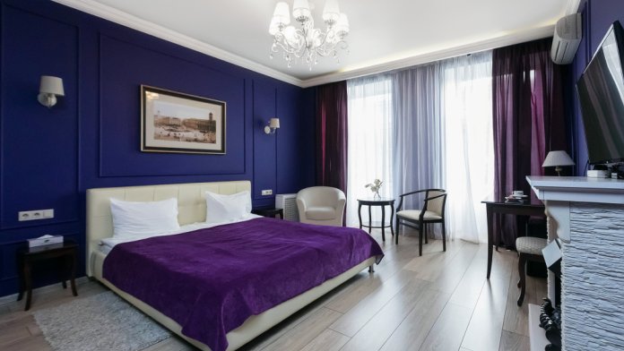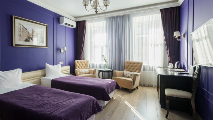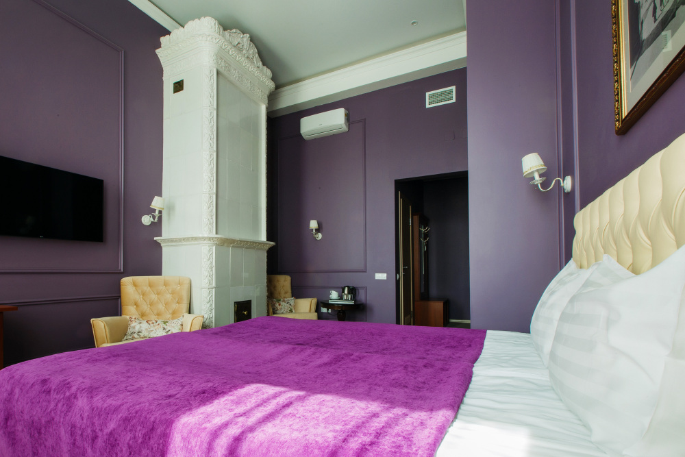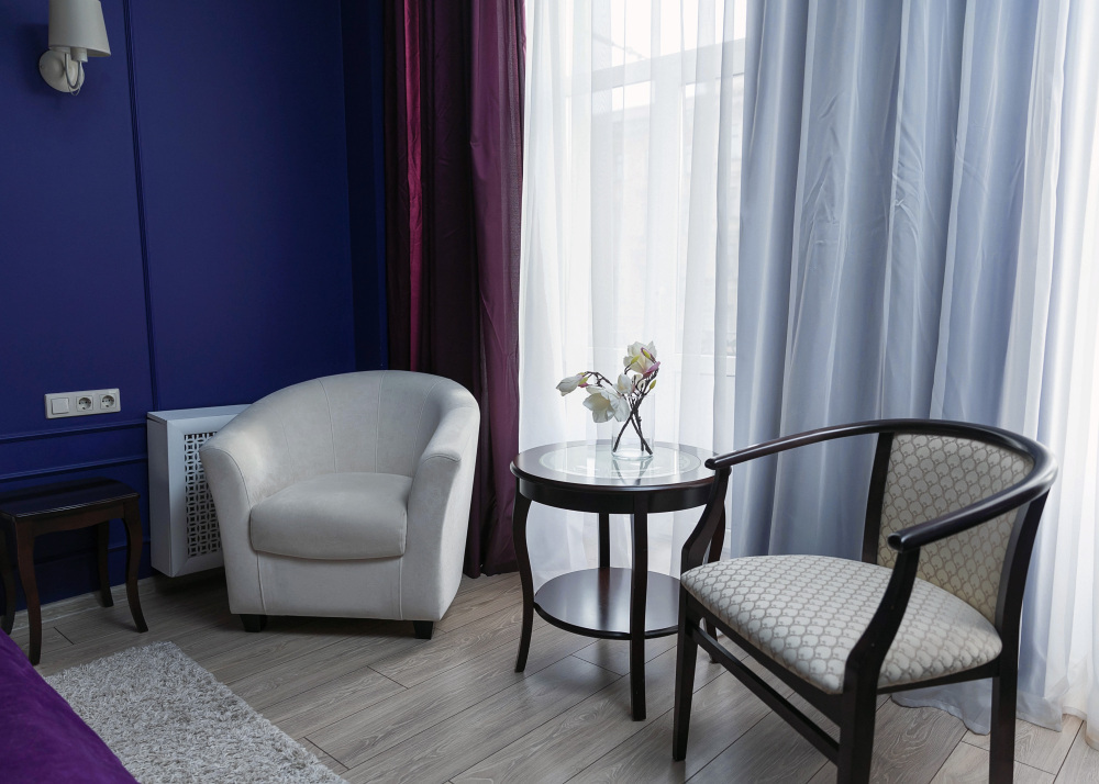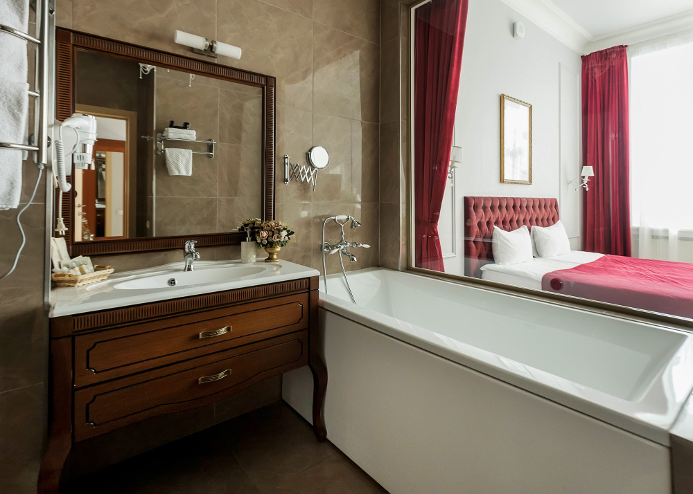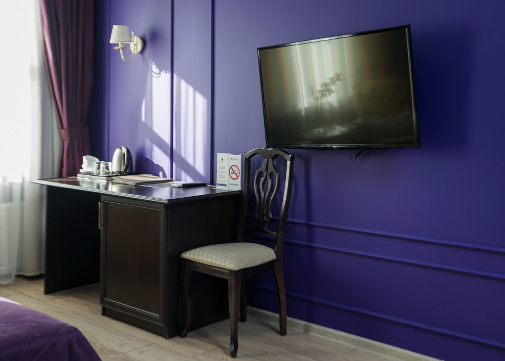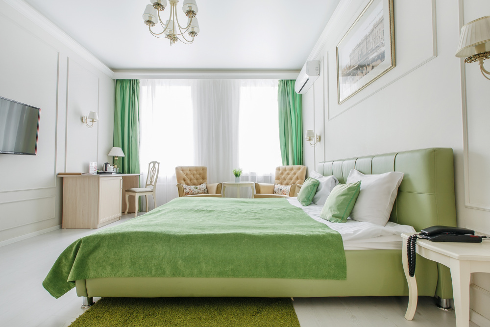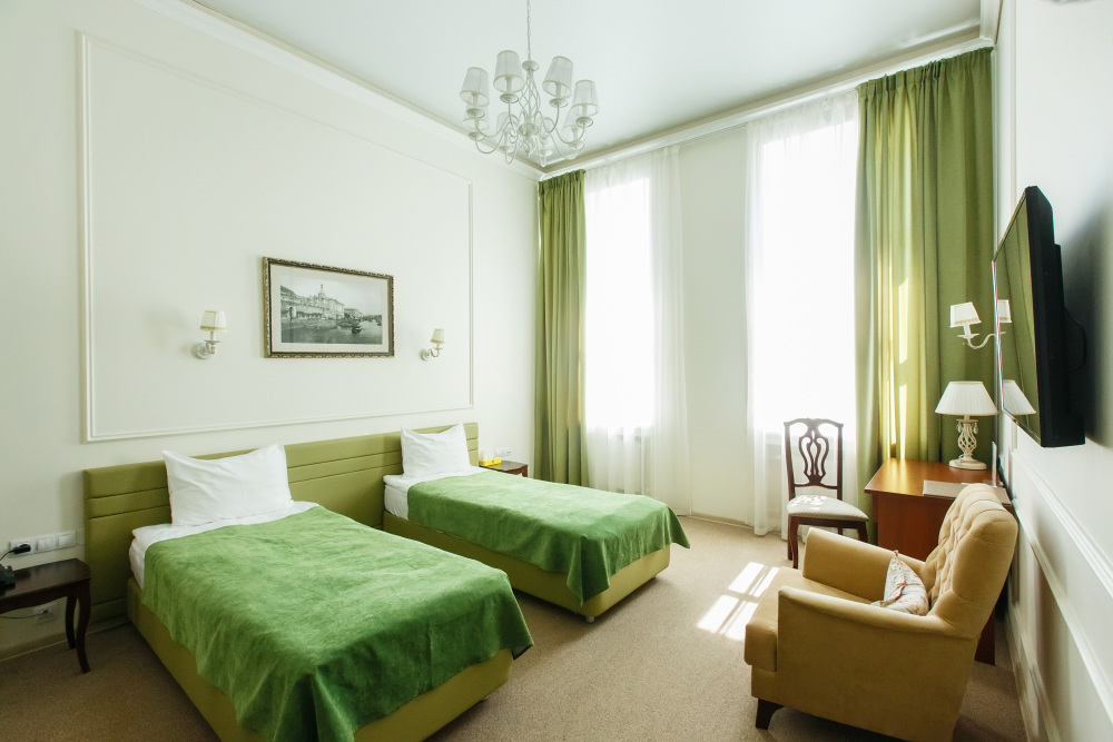 Просторный номер со спальней и ванной комнатой с душевой кабиной, феном, банными и косметическими принадлежностями. Окна номера выходят в тихий внутренний двор. Меблированы большой двуспальной кроватью, шкафом-гардеробом, журнальным столиком. Номер оборудован спутниковым ТВ, бесплатным Wi-Fi, кондиционером, телефоном для внутренней связи по отелю, сейфом, чайной станцией (чайник, комплект чашек, чай, сахар), мини-холодильником.