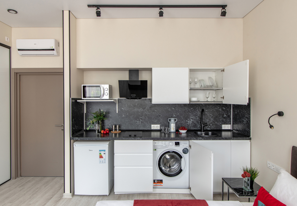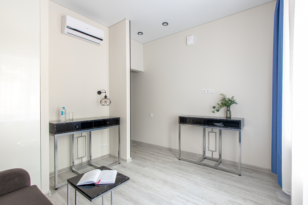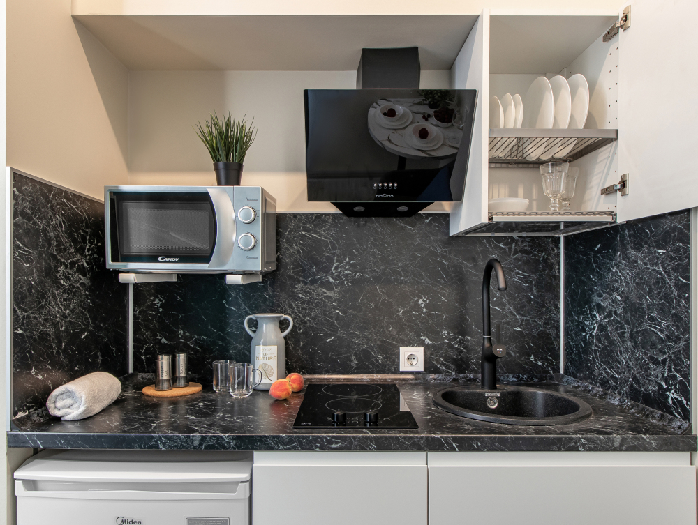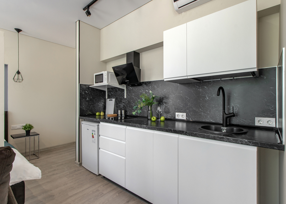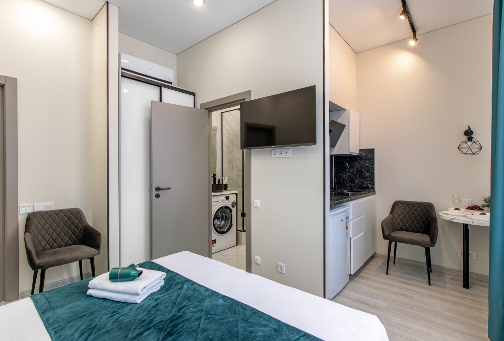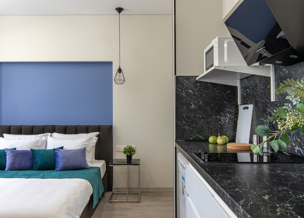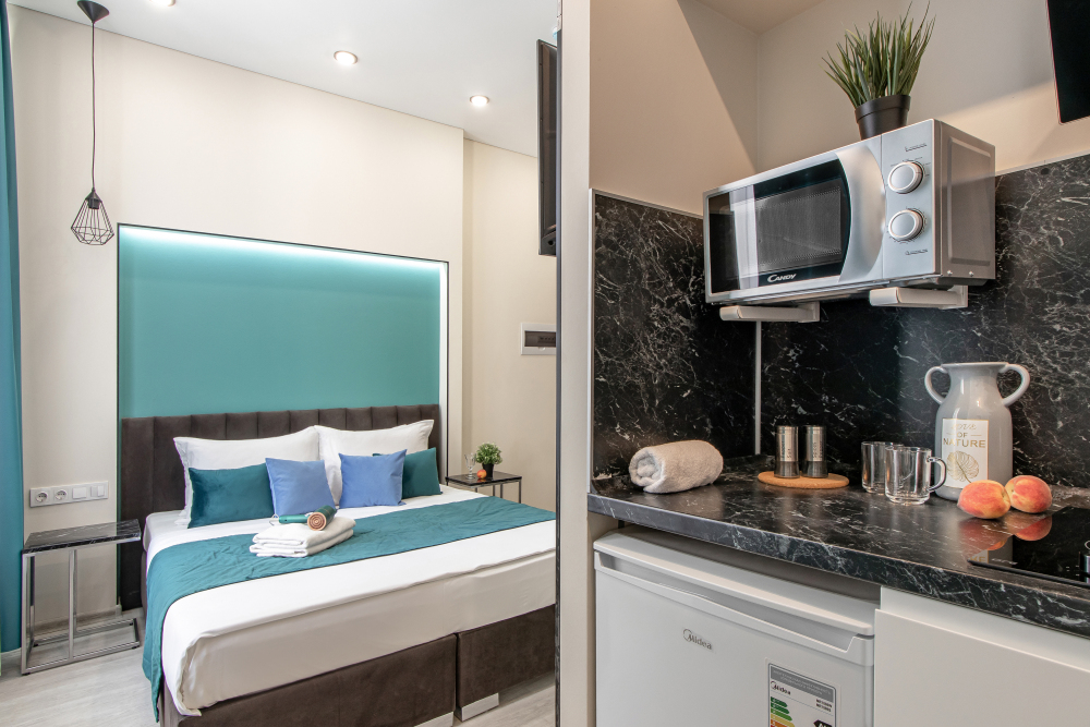 Во всех апартаментах есть полностью оборудованная кухня с микроволновой печью, холодильником, электроплитой и чайником, гостиная зона, телевизор с плоским экраном, стиральная машина и собственная ванная комната с душем и тапочками. К услугам гостей представлены номера с современным дизайнерским ремонтом, мебелью, кондиционером и бесплатным Wi-Fi.
